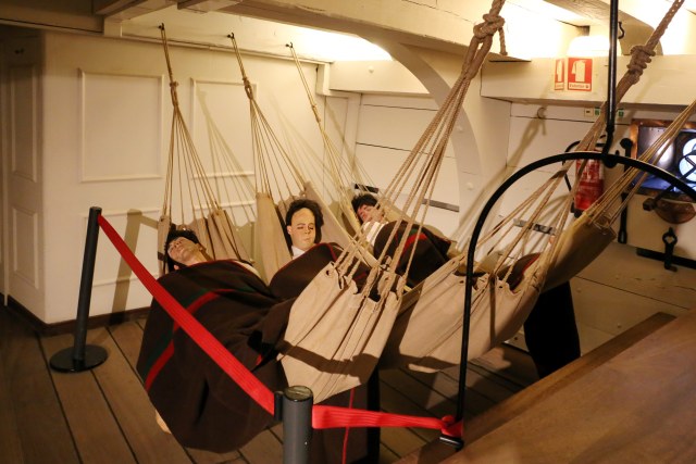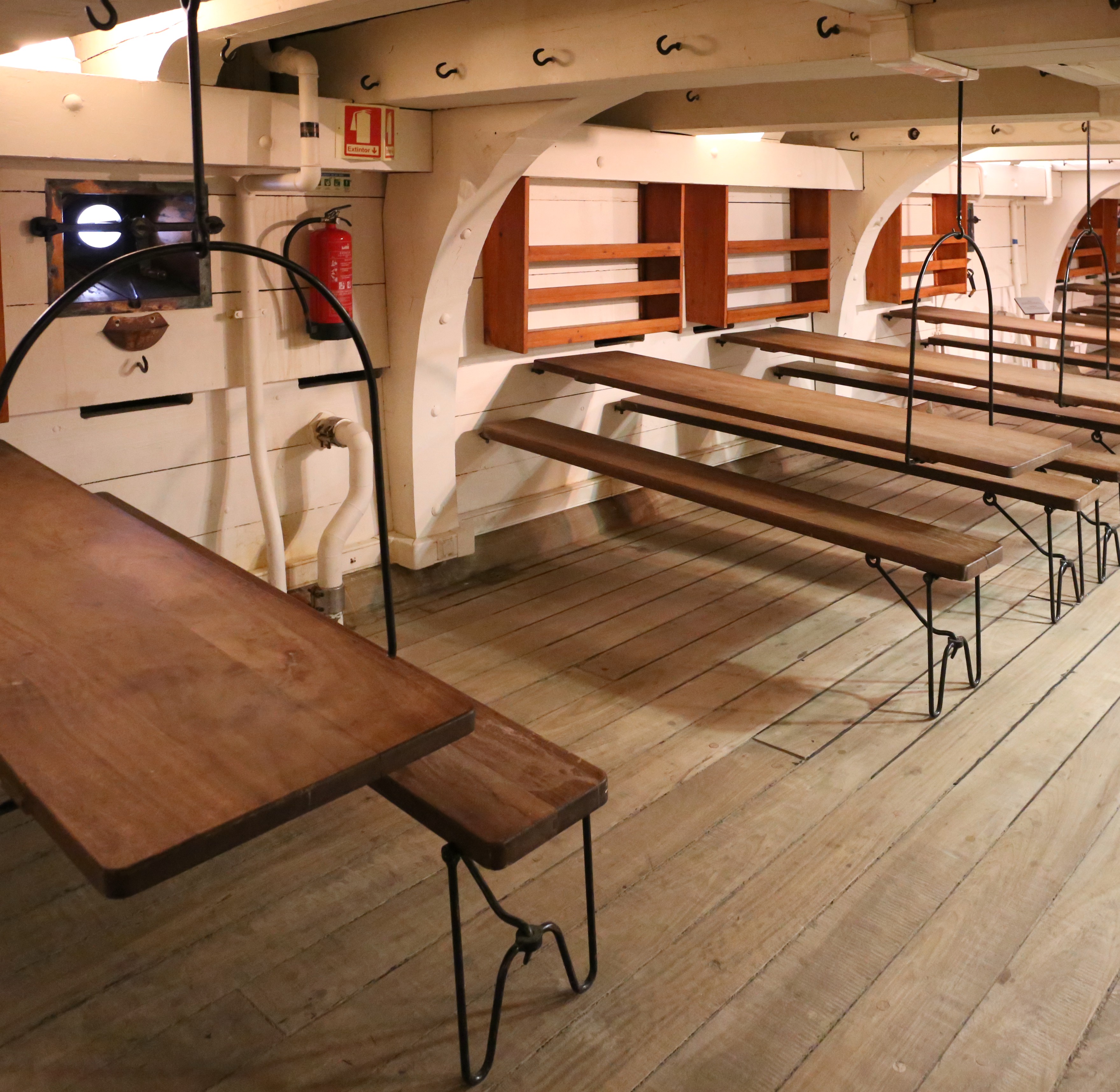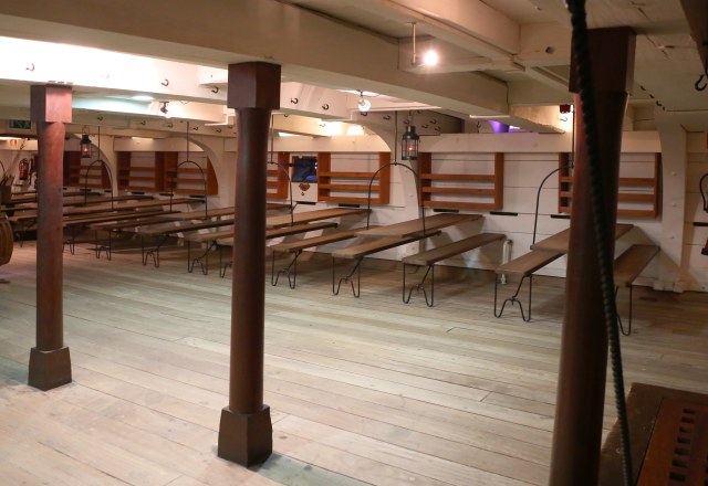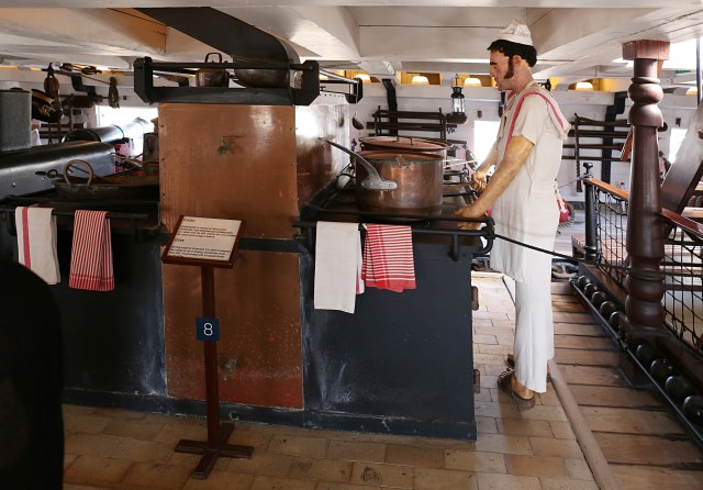То что было на верхней палубе худо бедно видно на многих снимках, есть снимки и нижней орудийной палубы и там свободного места практически нет. А любого военного корабля экипаж намного больше чем даже на современном круизном... равного ему по размерам. Так вот кроме как печи для приготовления пищи на этой палубе не увидел.
