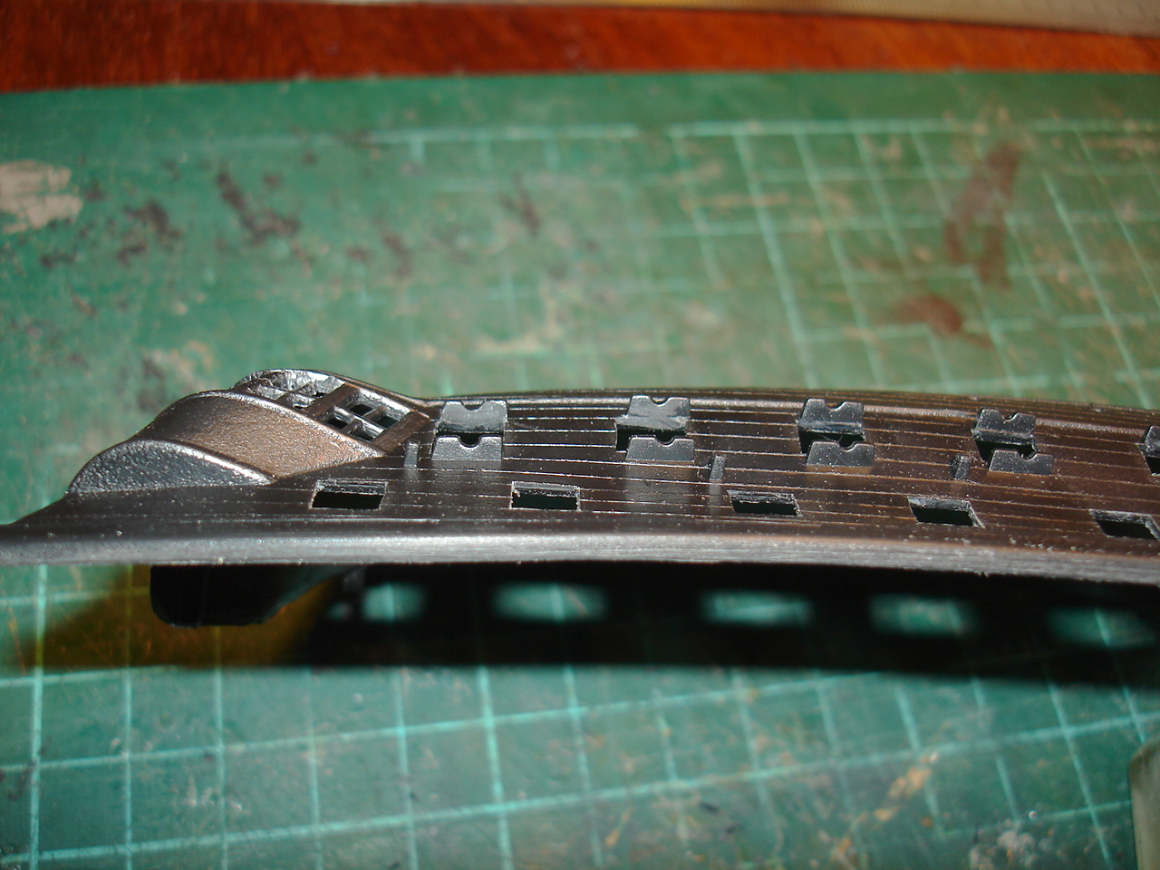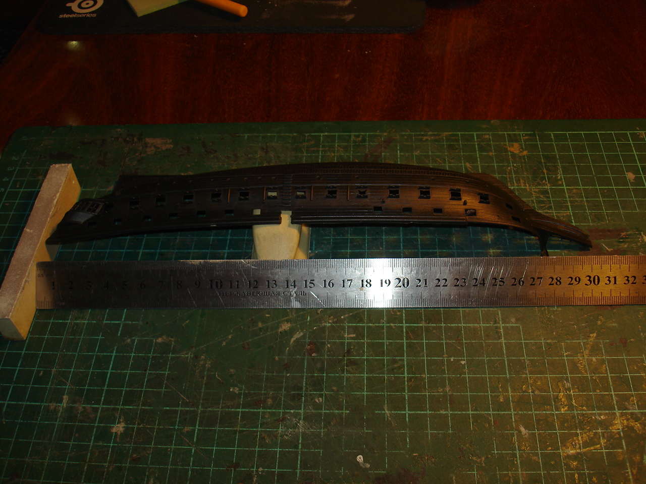 Мягкий однако и это не совсем хорошо, даже № 600 наждачная бумага оставила борозды. это минус, а вот порты ровнять на этом пластике одно удовольствие. Оба борта заняли не больше получаса