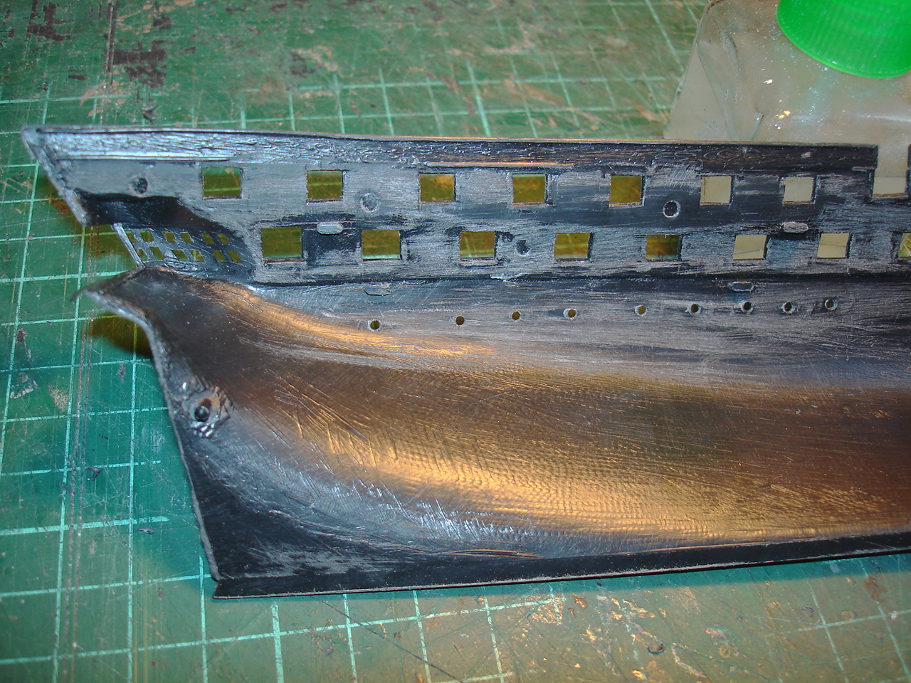 Так что иллюминаторы остаются и глушиться теперь точно не будут. Орудийные порты на корме ? Не Да! ни НЕТ! Они были, но в наборе не показаны и решение по ним примем на встрече за чаем на кухоньке. Сегодня все , своих в известность поставил, а вот когда сможем сыграть большой сбор и собраться пока не знаю, дела у всех однако, но своим нытьем постараюсь их достать