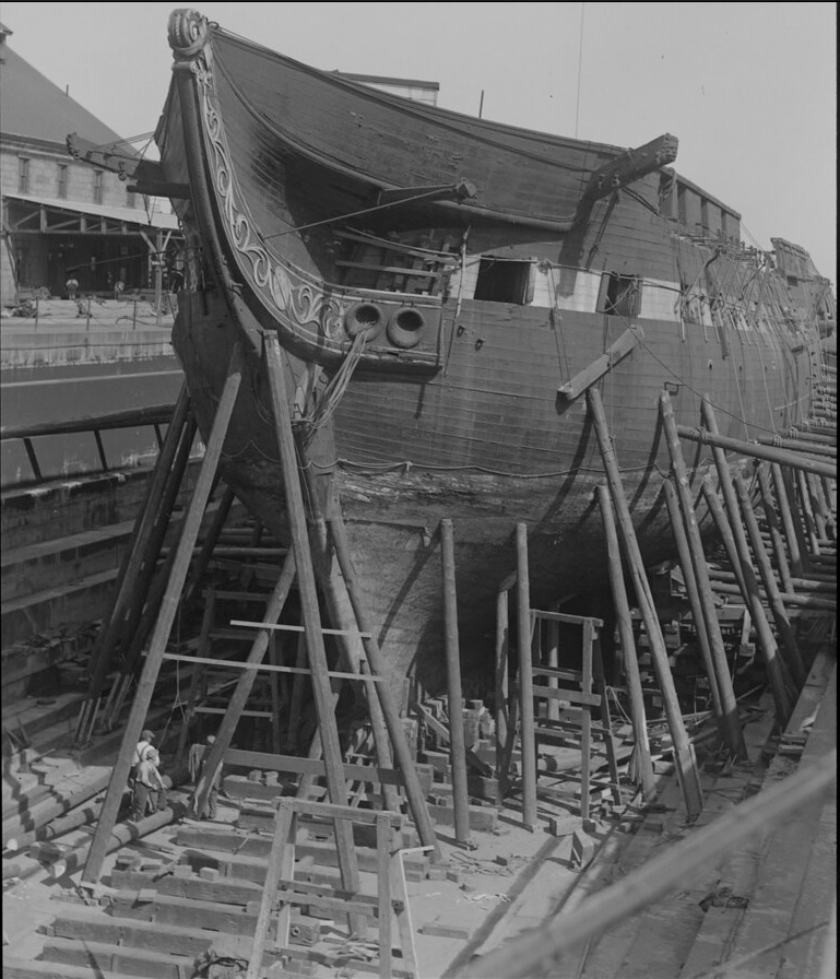 Это Конституция, да Янки а не Голландец, но считаю, что он сохранен лучше. Наш герой горел и лег на дно, потом поднят и восстановлен, но не как памятник, а как учебное судно... это потом его перевели в музей. Поэтому считаю, что там не все гладко в плане достоверности. Но то что крой должен быть наружу.... это чисто мое мнение и его не навязываю.