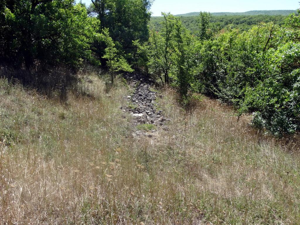 Первый объект моего посещения, Сюйреньская крепость, находится на мысе Куле-бурун, происхождение названия мыса очевидно. Чтобы добраться до крепости, я двинулся по тропе в Кизильнике. По пути повстречался небольшой грот. Затем влево отходит тропа, ведущая на вершину мыса. Подъем крутой, кое-где приходится действовать не только ногами, но и руками. Тропа приводит к древней дороге. Если двигаться по ней налево, то она приведет к крепости.