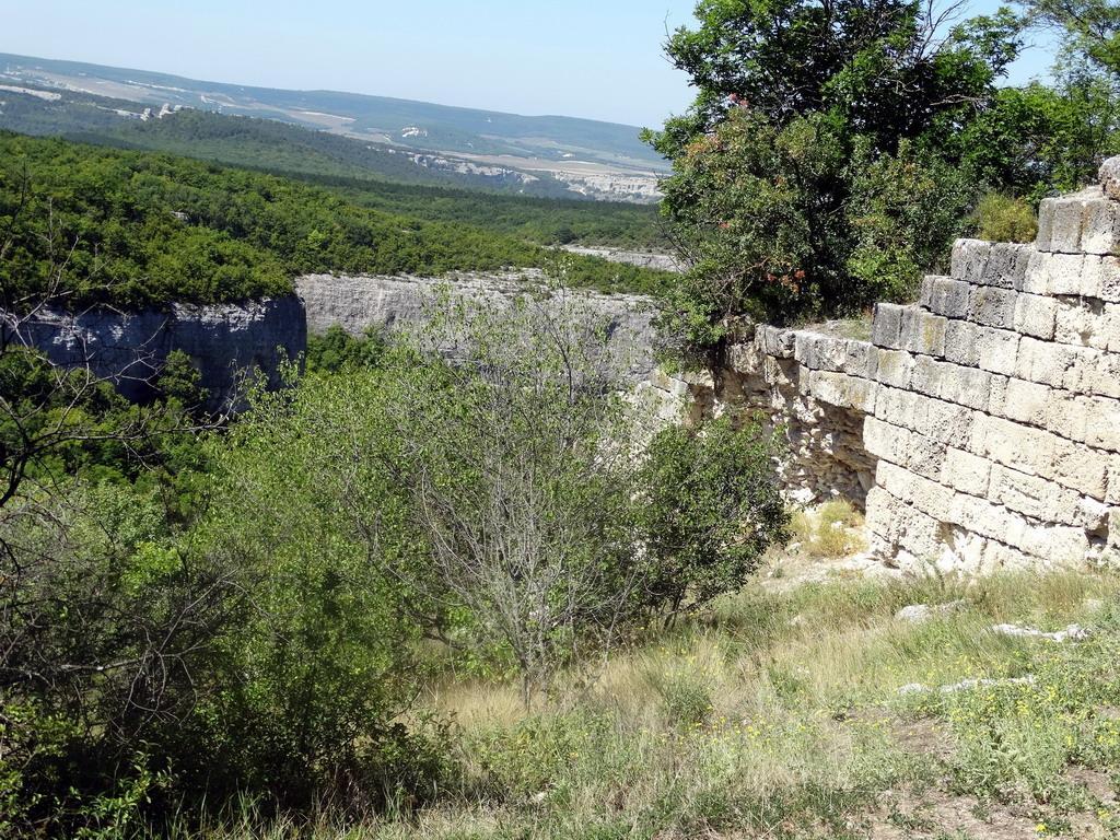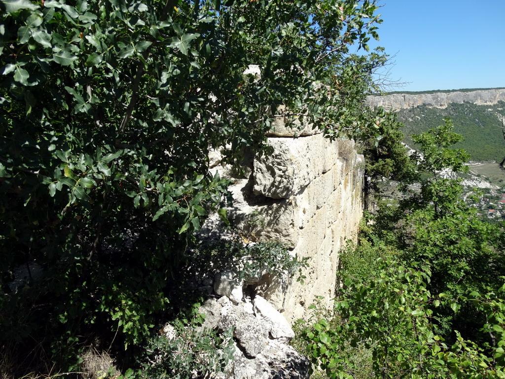 Вот, наконец, и крепость. Это мысовое укрепление, таких в Крыму известно немало (Чуфут-кале, Кыз-кермен и другие более мелкие и менее известные). С трех сторон территорию лучше всяких стен защищают вертикальные обрывы в несколько десятков метров высотой. С доступной стороны мыс перегорожен стеной с башней. Длина стены около ста метров. Две куртины сходятся у башни под тупым углом, что обеспечивает фланговый обстрел. Изучен памятник слабо, неизвестно даже когда крепость построена, можно только сказать, что ее строили византийцы. Датировка же чрезвычайно расплывчата – с VI по XII века, т.е. 600 лет. Возможно, крепость построена в конце VI века, при Юстиниане I или его ближайших преемниках в рамках создания оборонительной системы Херсона. Возможно, ее построили позже, во второй половине IX века при императоре Феофиле в связи с основанием фемы Климатов. А может быть, крепость сооружена в XII веке, в правление Комнинов, когда византийцы обновляли фортификацию в разных местах империи, в Таврике в том числе. В XIV веке крепость стала северным форпостом княжества Феодоро (о нем я как-то рассказывал: https://karopka.ru/forum/messages/forum168/topic8309/message200106/#message200106 ) В 1475 году крепость разгромили турки во время своей кампании по завоеванию Крыма.