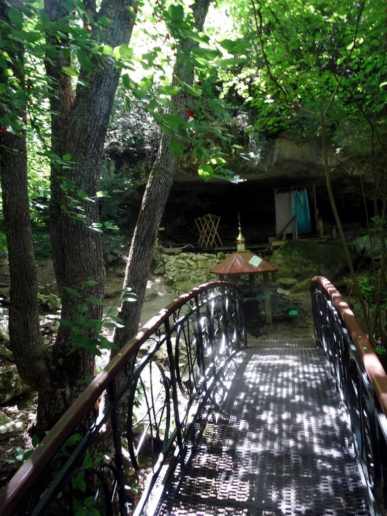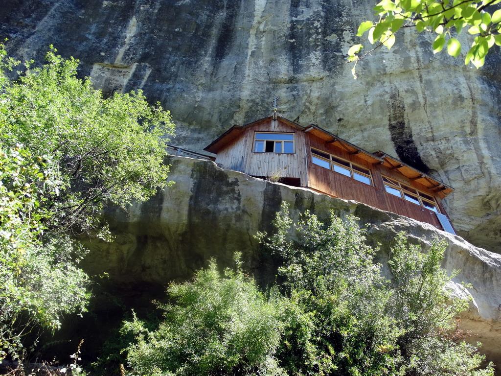 Название Чилтер-коба татарское, означает «пещера с решеткой». Не исключено, что «чилтер» - это искаженное готское «чилт», т.е. щит, а монастырь неофициально именовался «щит веры» или еще как-то в этом роде. Судя по названию скалы, он был освящен во имя святого Феодора, только вот какого? В XIV-XV веках православная церковь почитала более десятка святых Феодоров. Из них в Крыму особым почитанием пользовались трое: Феодор Стратилат, Феодор Тирон и Феодор Гаврас. Сейчас монастырь освящен во имя Феодора Стратилата, в нем проживают шестеро монахов и сюда приходят паломники. Когда я уже уходил, пришла группа, человек десять.