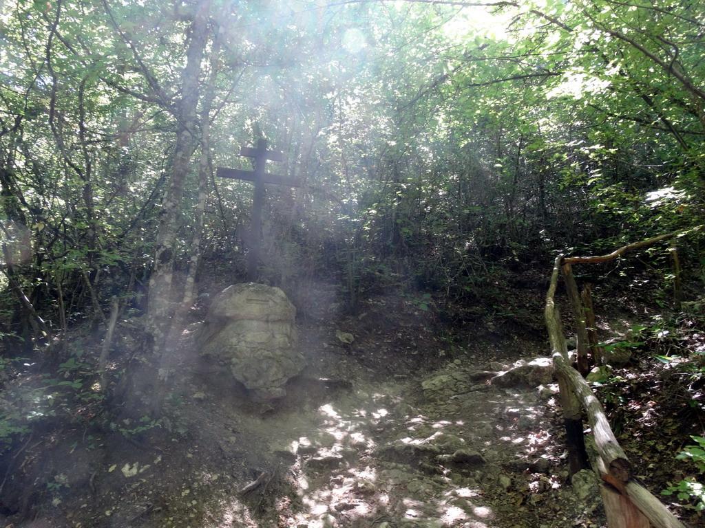 Для посещения следующего объекта я покинул Сюйреньскую крепость тем же путем, что и пришел. Стал спускаться по тропе в Кизильнике. Слева (это если спускаться, если подниматься, то справа) отходит тропа к монастырю Чилтер-коба. Уклон тропы невелик, есть даже лавочка для отдыха. Идти недалеко, метров сто или немного больше.