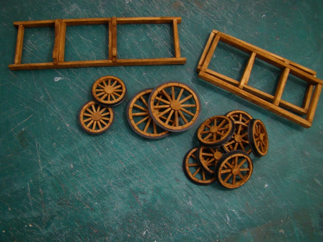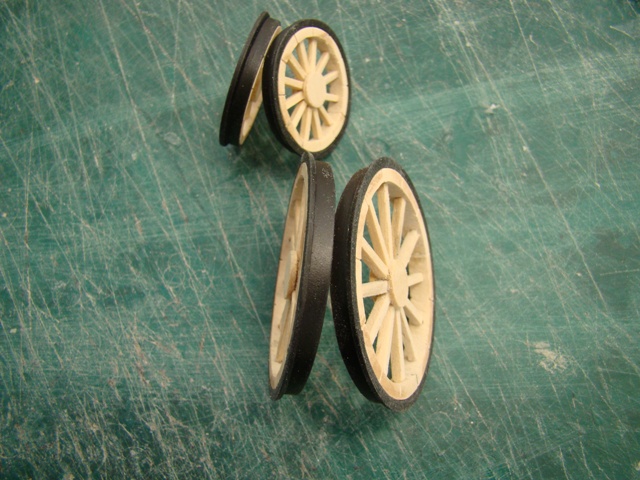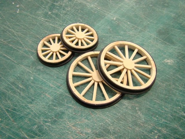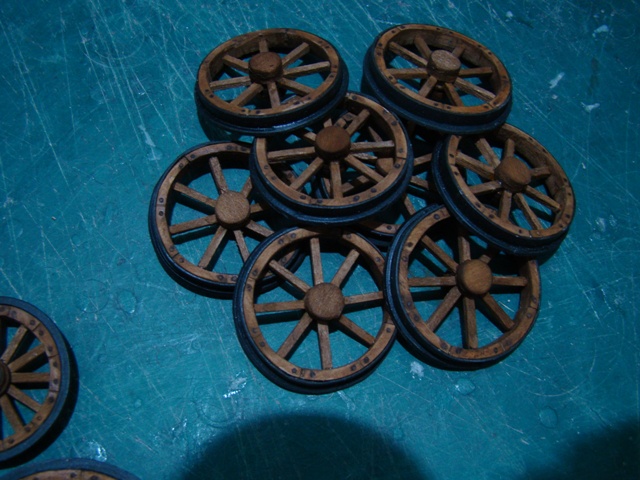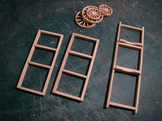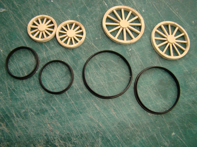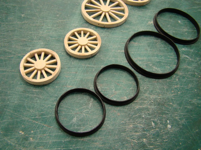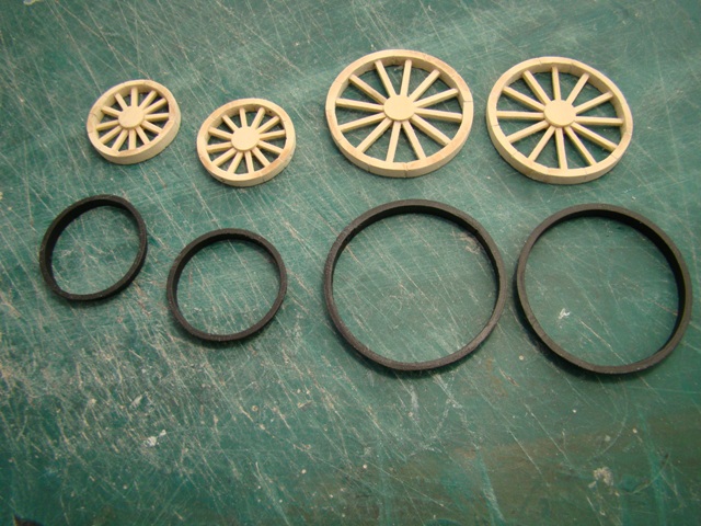 Сделал колёса, рамы тендера и вагона. Из пластика сделал ободки передних и задних колёс.