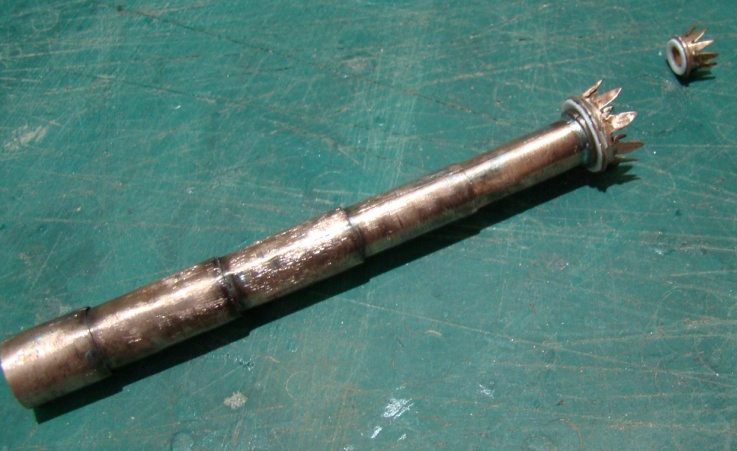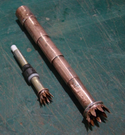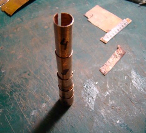 Из меди 0,3мм спаял большую трубу и наконечник малой трубы.
