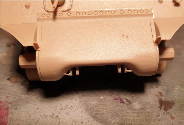 Вяло подсобрал мелочевку на корпусе, насверлил дренажных отверстий, про которые меня научили на прошлом Шермане. Хотя, стоит отметить, отверстия возле горловин были в наборе родные. Возможно стоит сделать более явными сварные швы вокруг "воротника" у основания башни. Они прямо совсем еле видны. Подумаю над этим.
