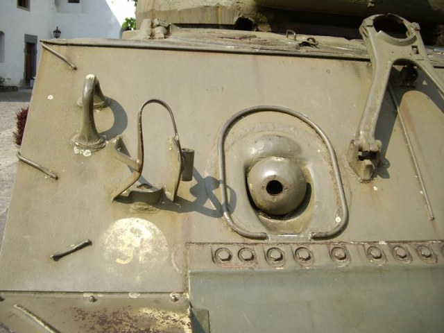 Ещё пересмотрел все свои фотки Шерманов, везде. где есть эта хреновина, везде на ней пупырки, не зависимо от модификации, включая канадский Гриззли. не важно, музейный ли экспонат, или архивные фото...