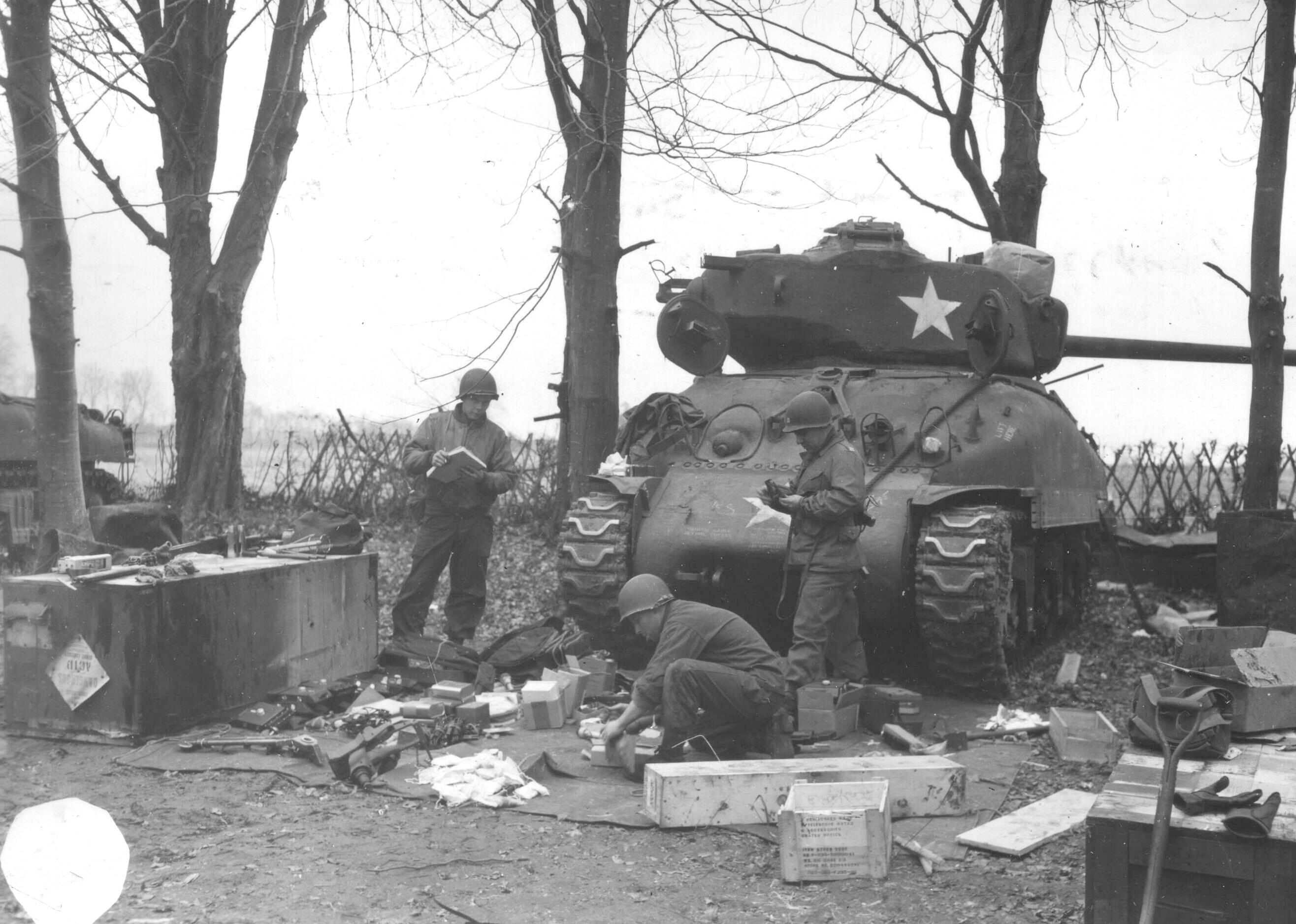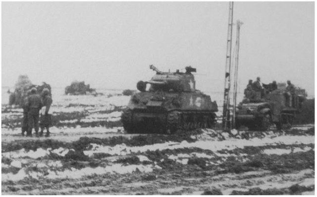 - Цвет. Считается, что юнит Тандерболт VI был в использовании с Сентября по Декабрь 1944. На первой фотографии танк совершенно явно уже в зимнике. На второй - уже лежит снег, но техника явно без следов побелки. Так что в смысле окраски я свободен выбрать любой из вариантов - зеленый или зимний.