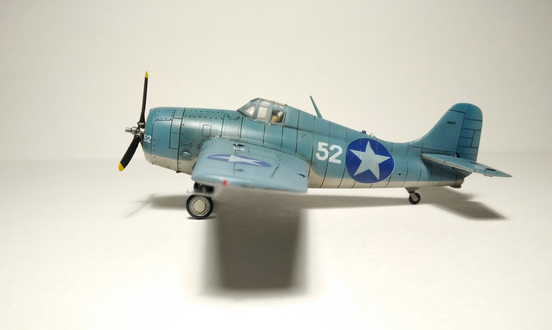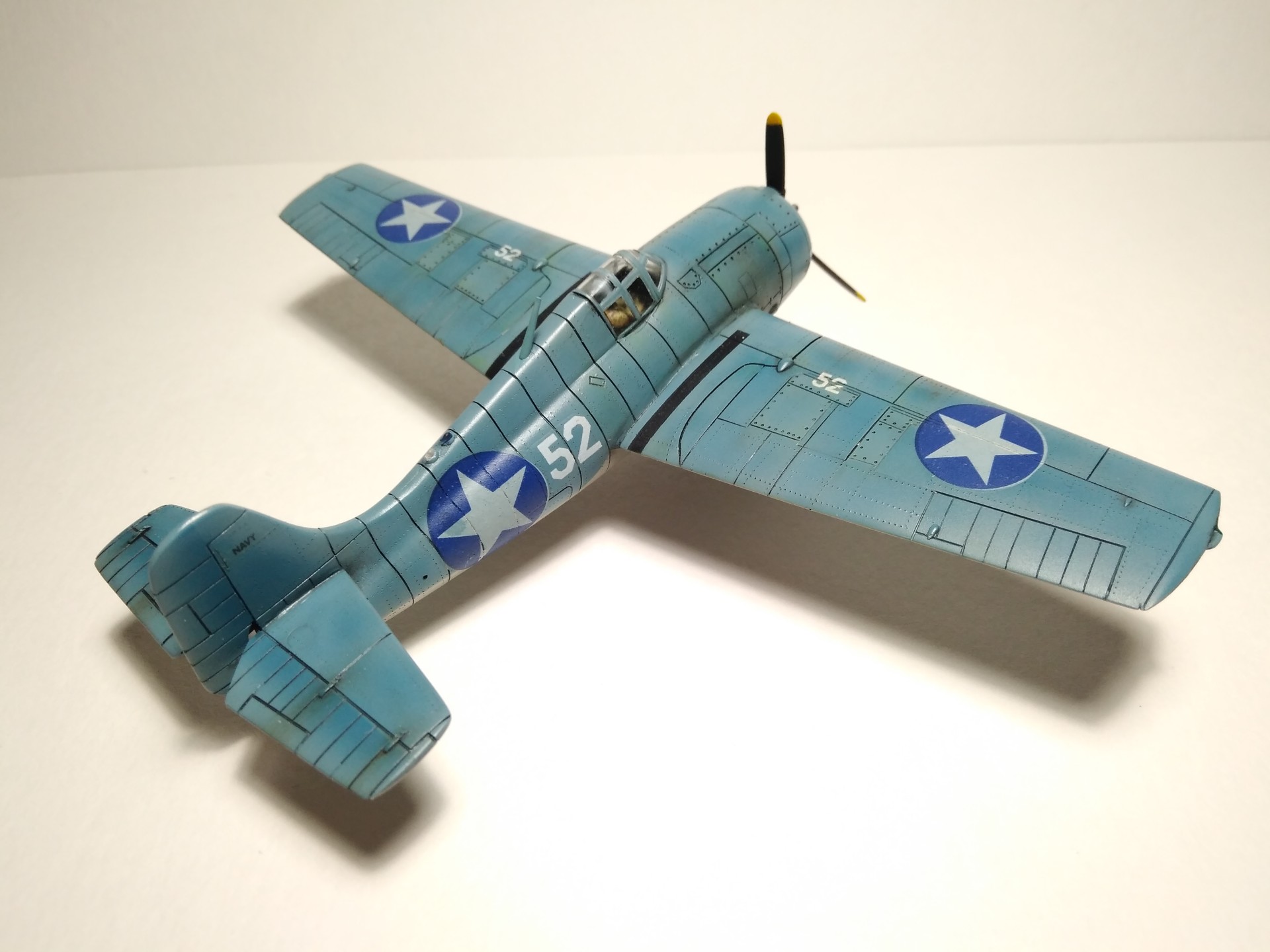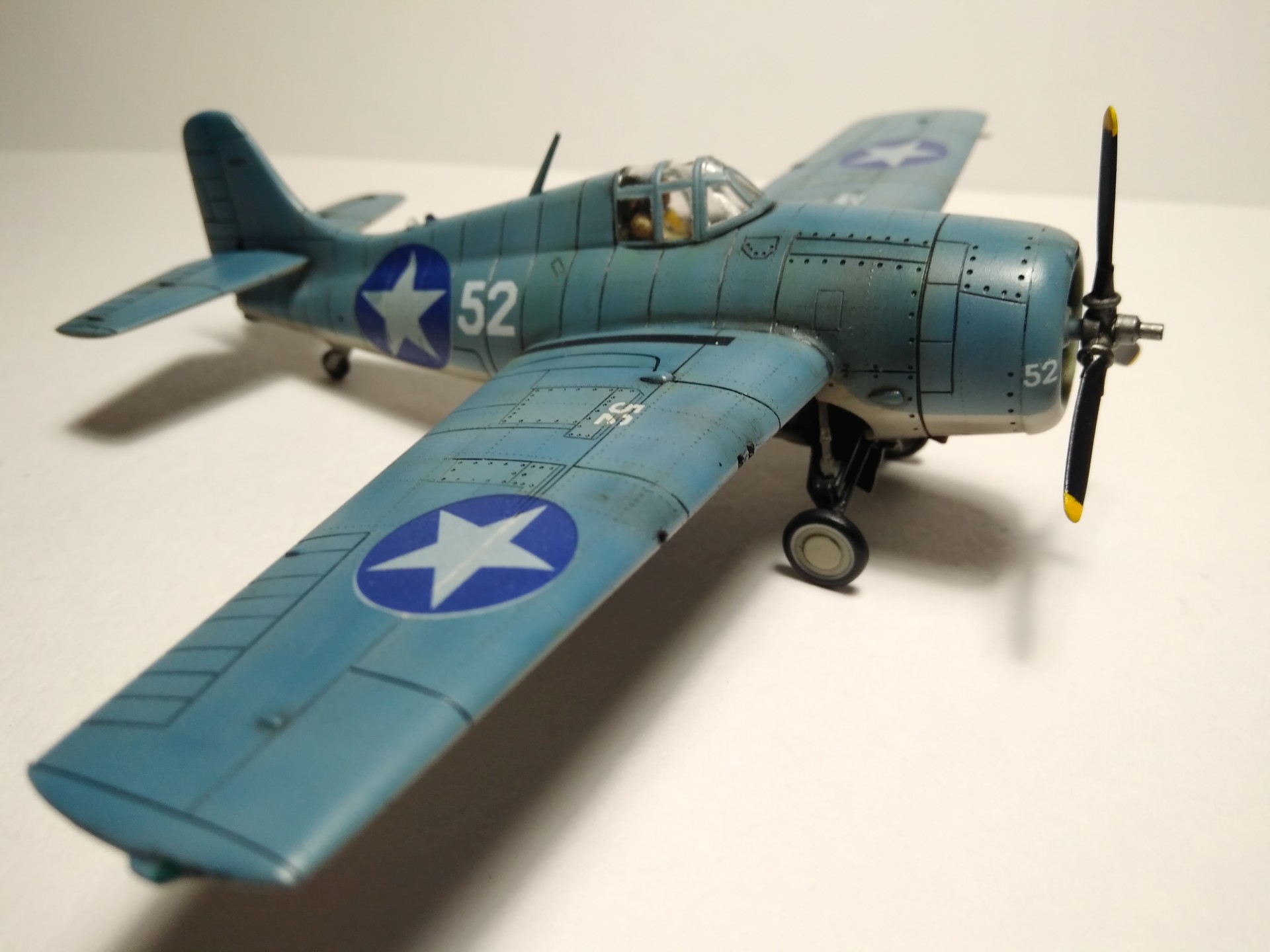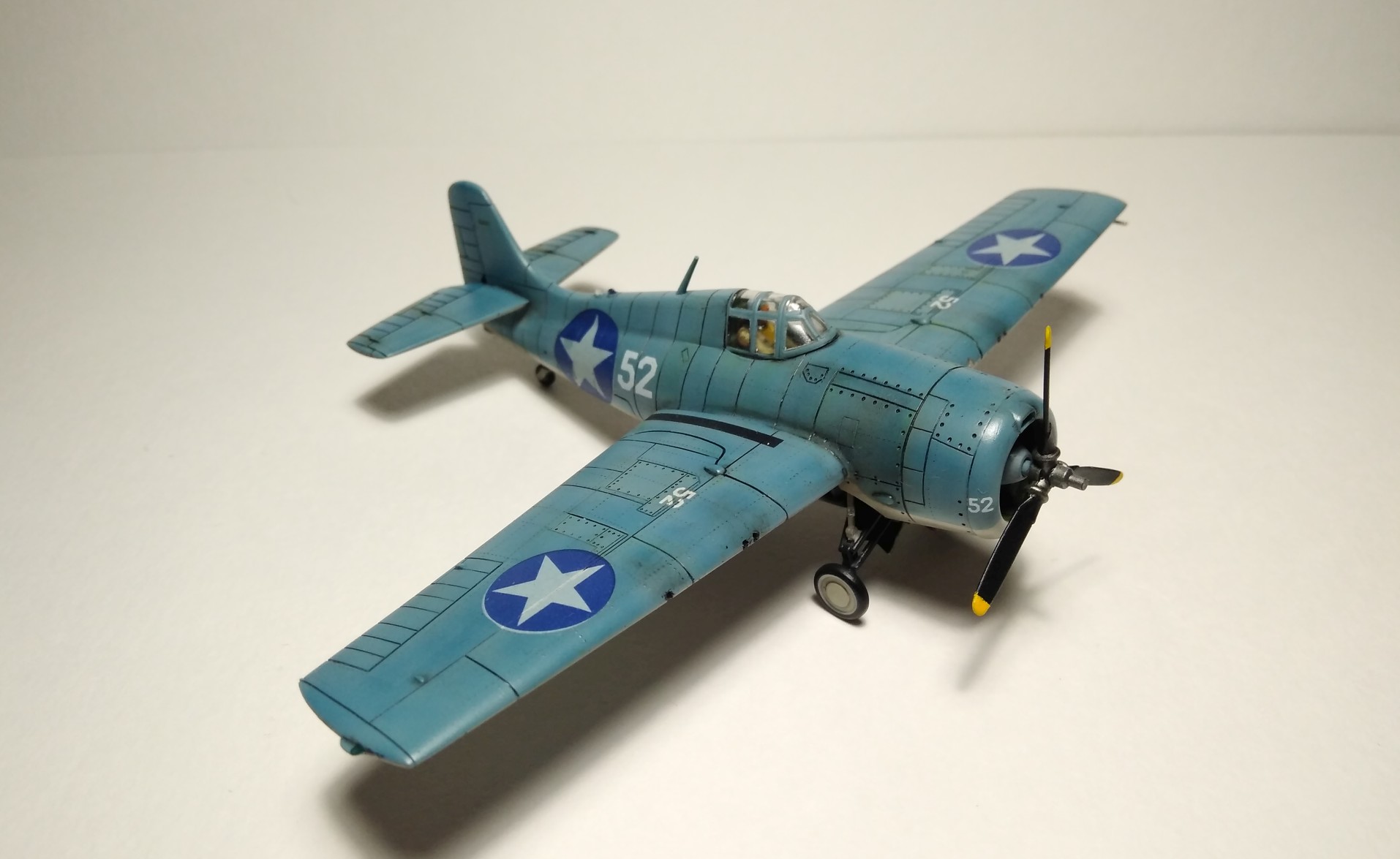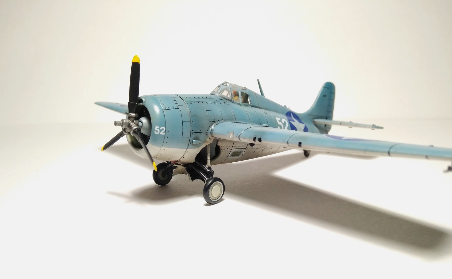 Думал думал и все же решил поучаствовать. Модель была куплена в средневековье, лежала незаметно среди больших коробок. Ну и как водиться при очередной уборке нашлась, покрутилась в руках и положена была на видное место с мыслью - может..когда нибудь...))) И вот после Ф-15 потянуло на простое. Ну и конкурс вроде еще не кончился. Набор странный - внешне все вроде неплохо - и расшивка и качество отливки. Но полностью отсутствует кабинет (то что в комплекте напоминает Фрог/Ново), сидушка и палка примерно обозначены. Причем мною же и вклеены не помню когда...Ниша шасси пуста, никаких перегородок...ну ничего. Хоть само шасси более менее. Двигатель - ЕСТЬ)...Даже двухрядный. Ну в общем на фото видно. Делать почему то захотелось какой нибудь из бортов на Гуадалканале. Может потому, что там американцы действительно показали крепость духа и отчаянную храбрость при полном превосходстве противника в силах. И порой вся их затея висела на волоске от краха. Ну потом промышленность наклепала стопицот авианосцев и тысячи Хеллкетов и все устаканилось)))