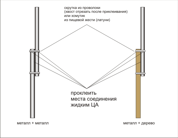 Иголки и любой полированный металл сперва нужно пройтись наждаком, т. е. заматовать, и обезжирить перед склейкой