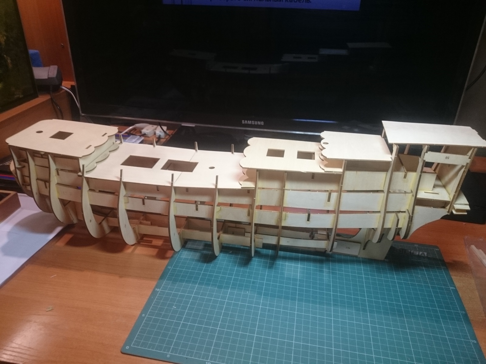 В итоге на сегодняшний день имеем вот такой результат. Хочу отметить каркас был собран так что все палубы встали на свои места что доставило некоторые проблемы, но всё вроде получилось.
