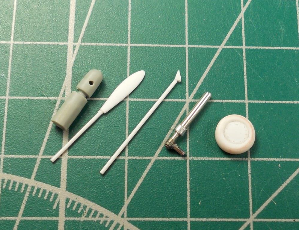 Пока решается вопрос по прозрачным деталям готовлю к тиражированию мелочёвку: кок винта, лопасть, стойка, подкос и колесо основного шасси:
