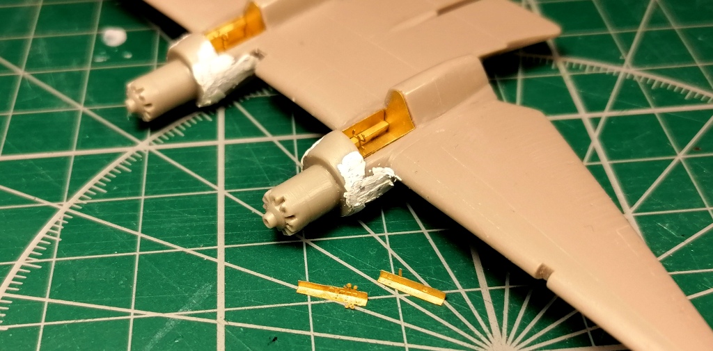 Капоты двигателей, киль и стабилизатор установлены "насухо". Посадка очень плотная.Вообще качество литья - отличное! Пока обнаружил только два крохотных пузырька, заделанных мгновенно.