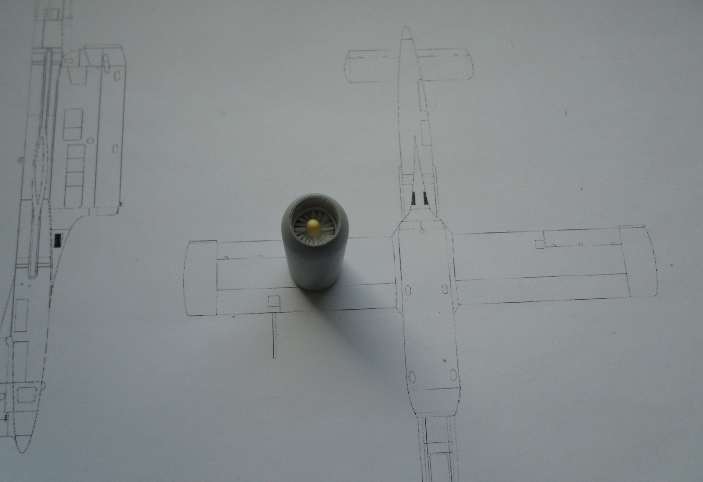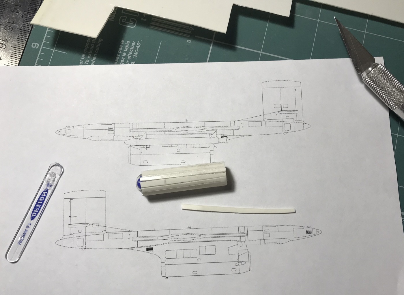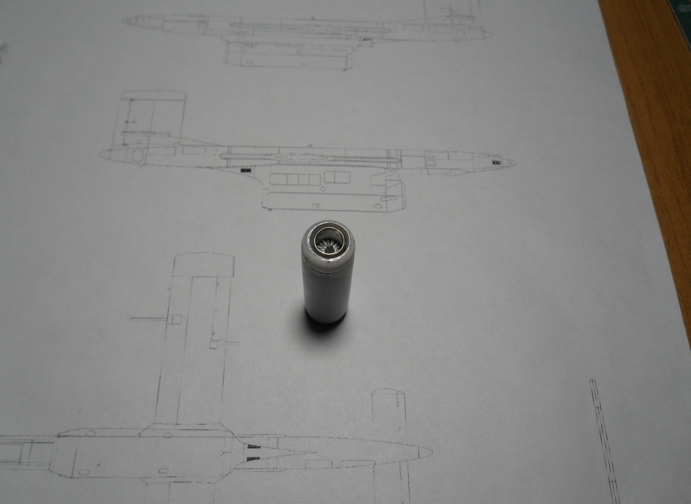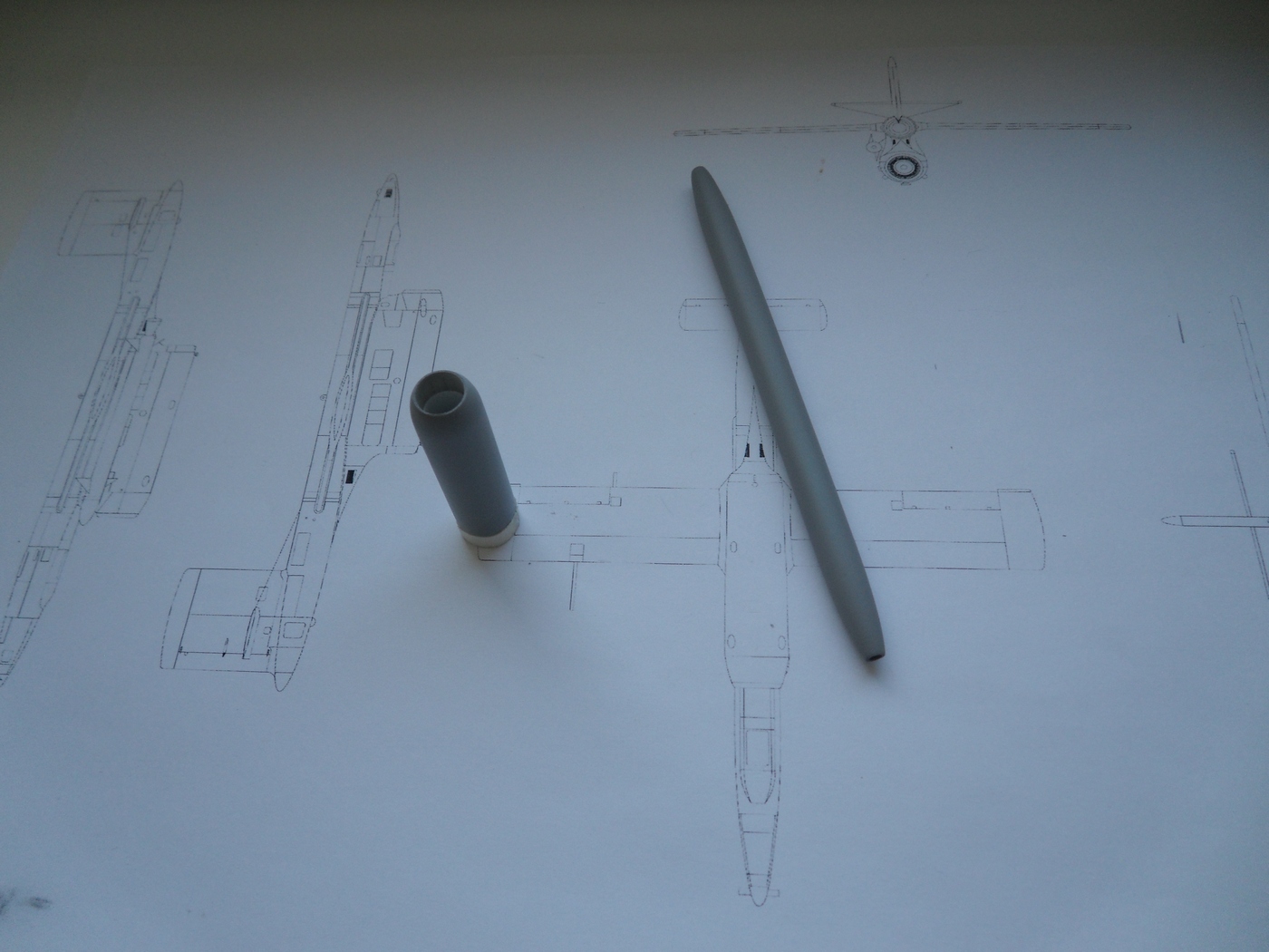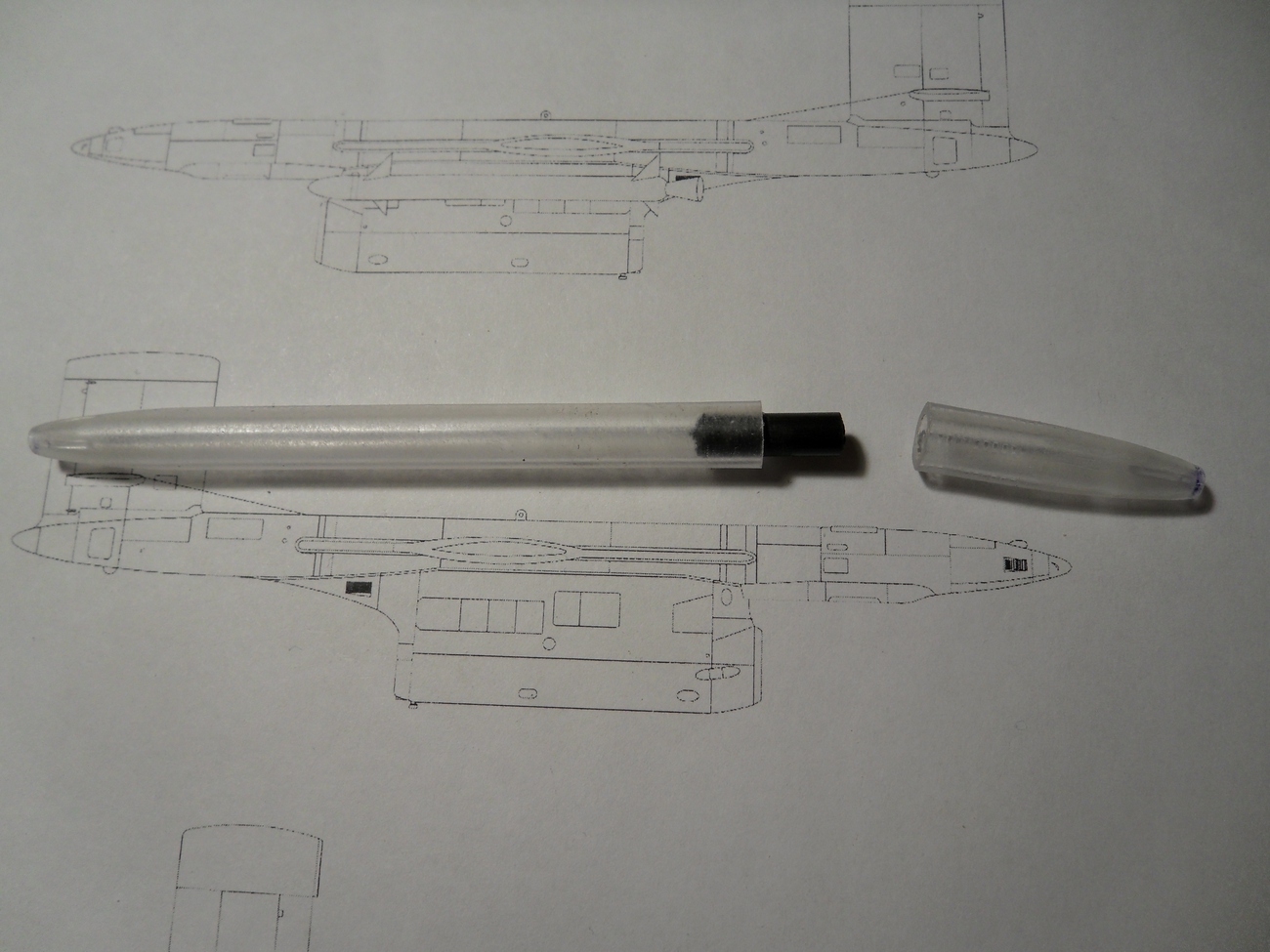 Из колпачка, от ручки, начал формировать гондолу двигателя, не хватает 1.5 мм внешнего диаметра... Наклеил полоски пластика толщиной 1 мм, после высыхания сточу лишне...