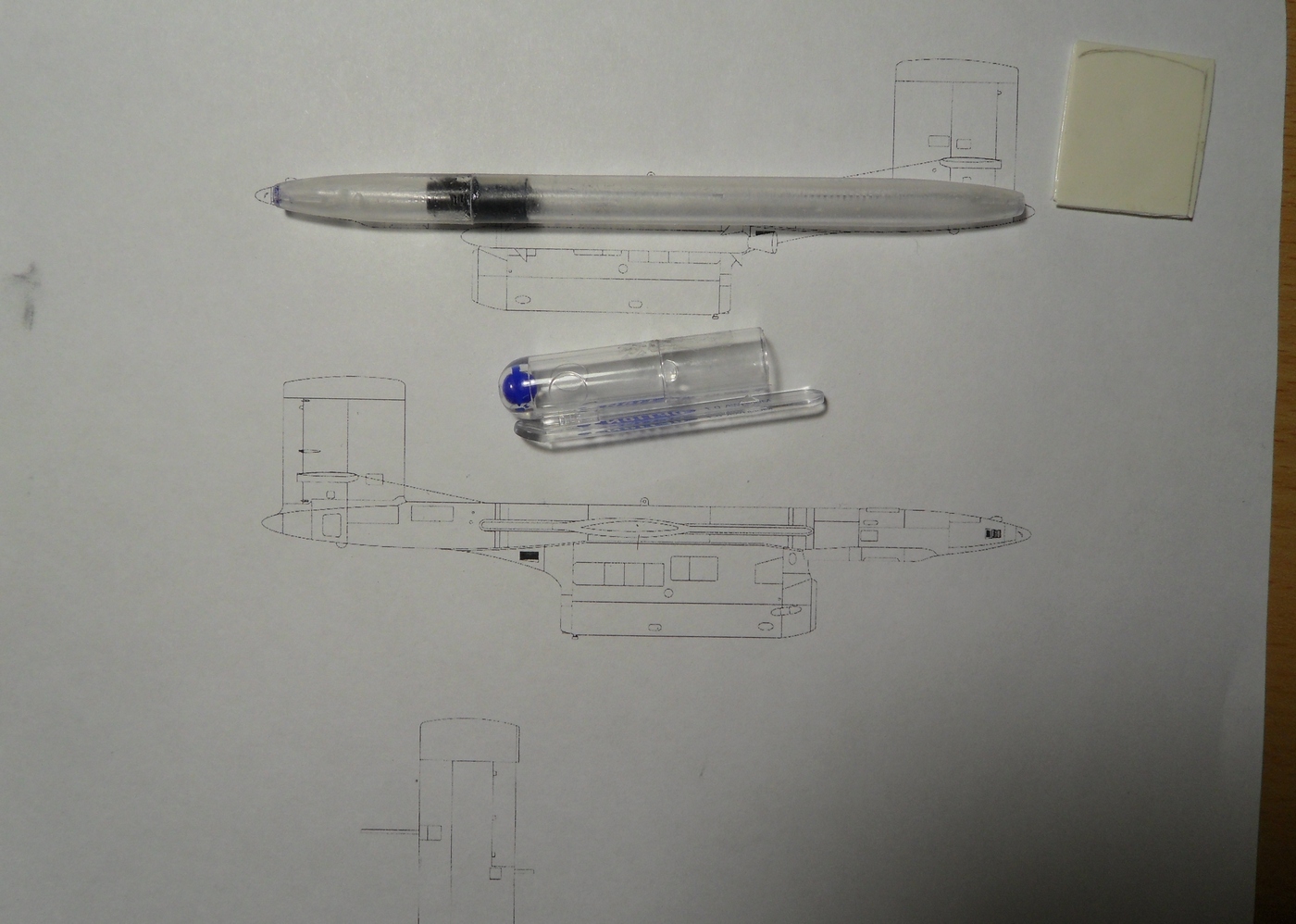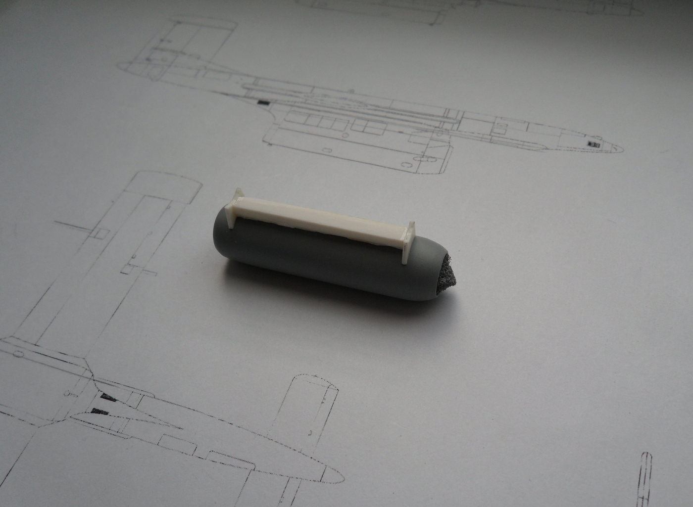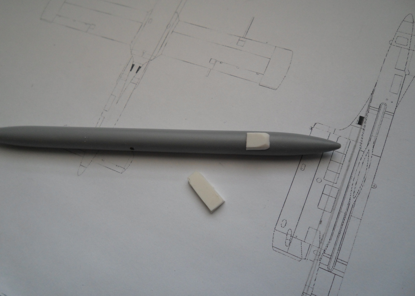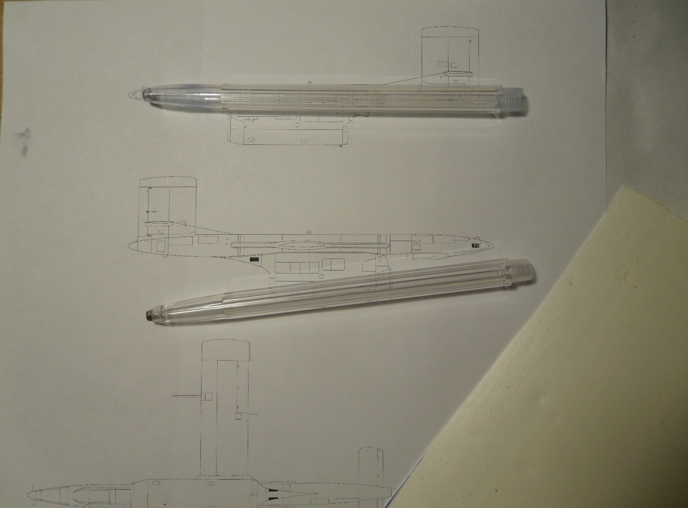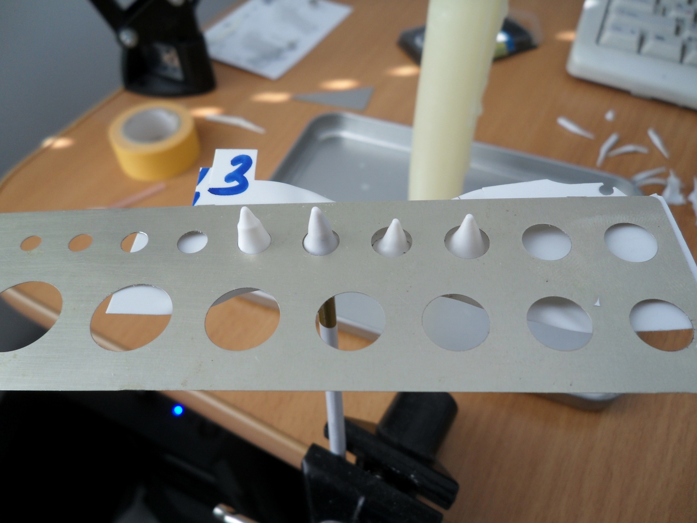 Из колпачка, от ручки, начал формировать гондолу двигателя, не хватает 1.5 мм внешнего диаметра... Наклеил полоски пластика толщиной 1 мм, после высыхания сточу лишне...