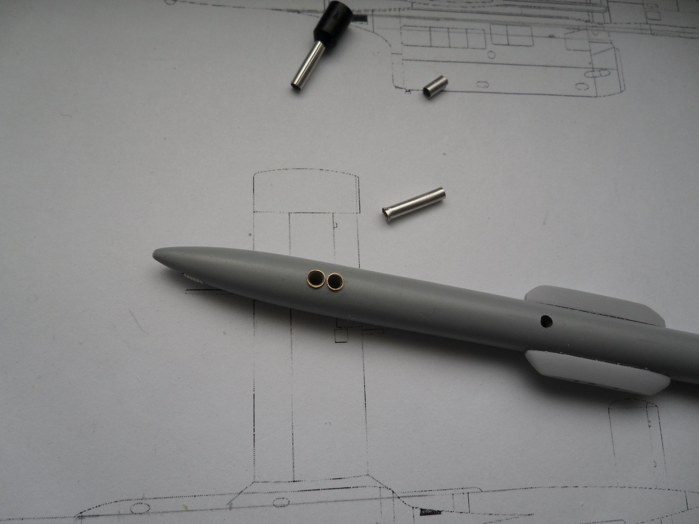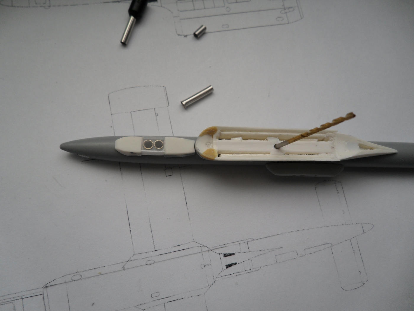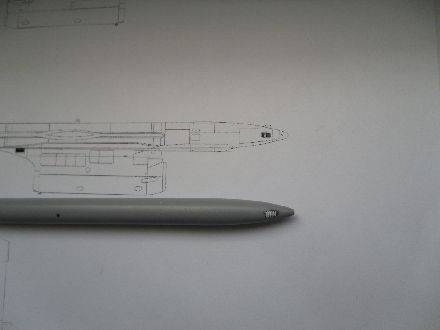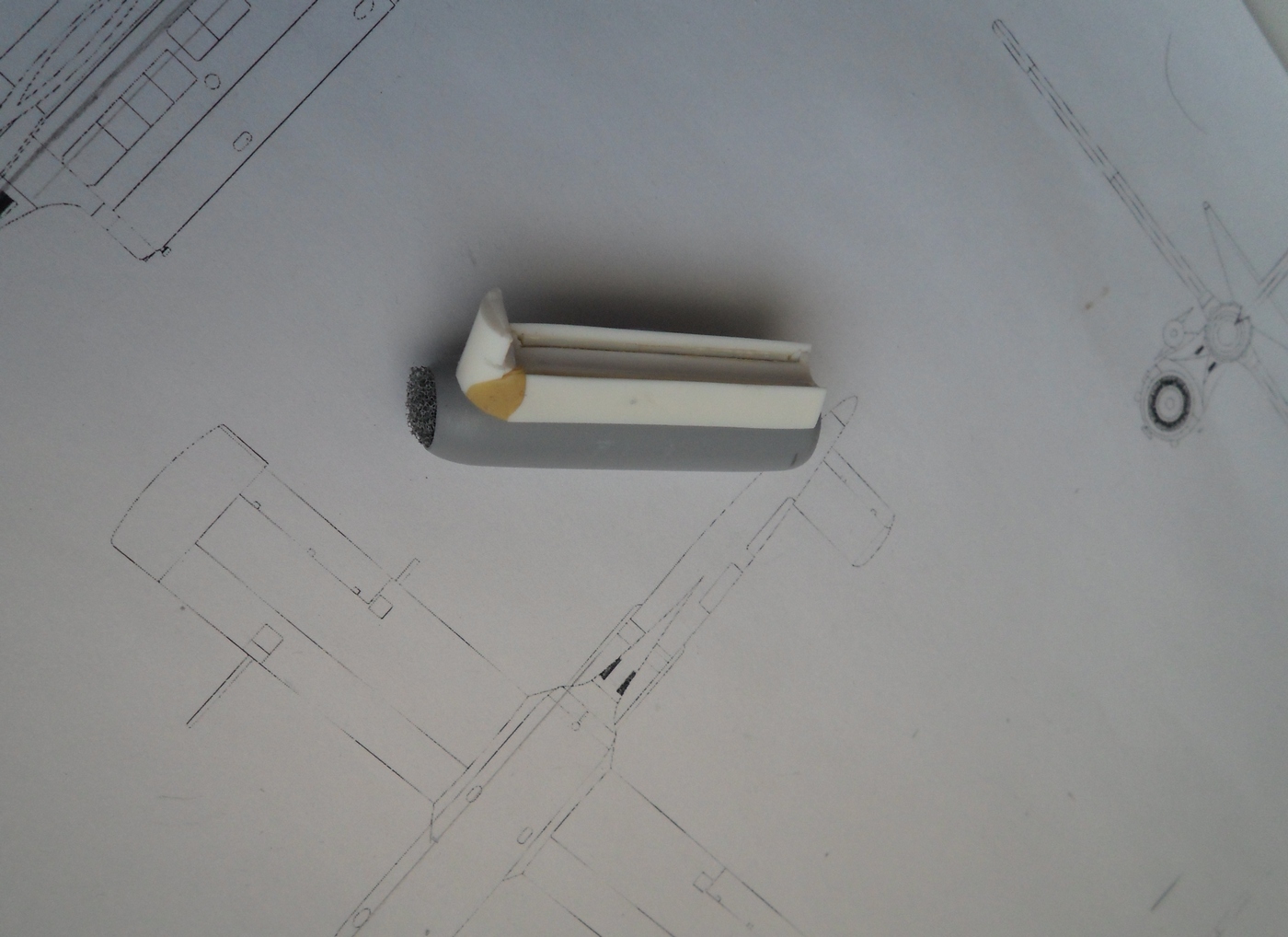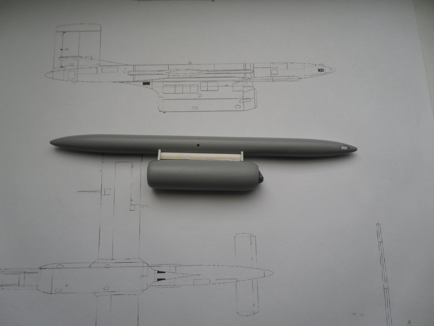 Из колпачка, от ручки, начал формировать гондолу двигателя, не хватает 1.5 мм внешнего диаметра... Наклеил полоски пластика толщиной 1 мм, после высыхания сточу лишне...