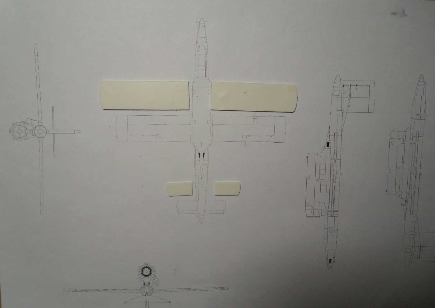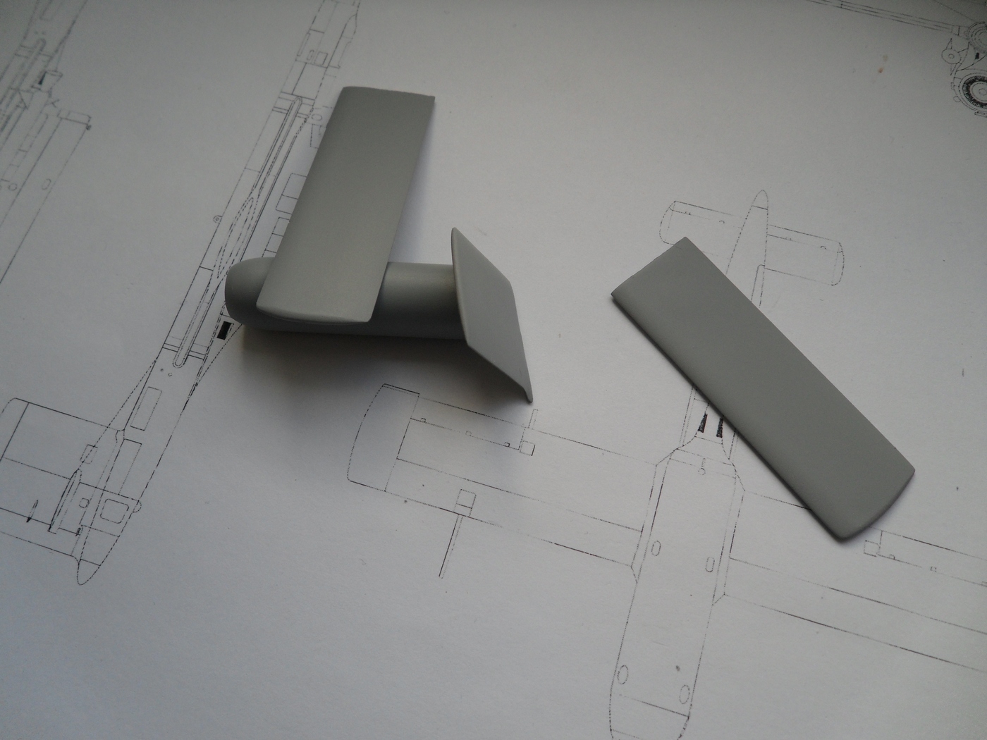 Собрал в черновую корпус, из 2 мм пластика вырезал крылья и киль, из 1 мм стабилизаторы...