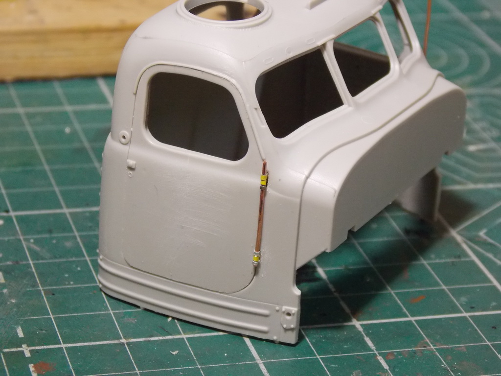 Немножко отчитаюсь.Подсобрал кузовок,осталось покорпеть над тентом. Покрасил ванну,приклеил катки и звёзды,кои тоже покрасил.Прикинул гуськи,сомневаюсь,достаточный провис,или избыточный? Украсил кабину зеркалом,не лишнее и имеет место быть,и всё интересней смотрится. Собрал капот. Осталось дождаться,когда пришлют эльфовские фары, в "Я моделисте" неожиданное пополнение ассортимента фар,прихомячил сразу три комплекта,запас не помешает. В общем,пазл потихоньку срастается