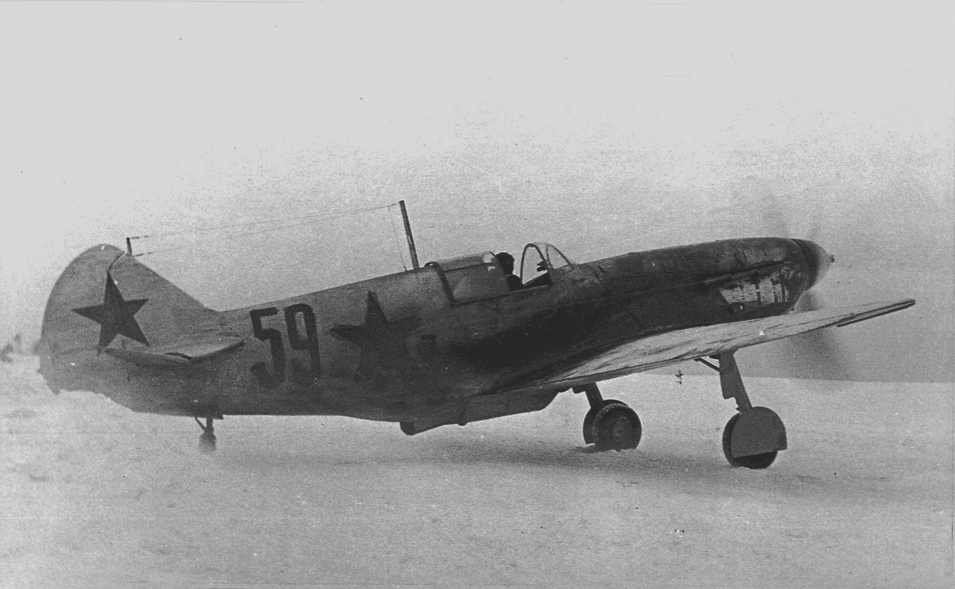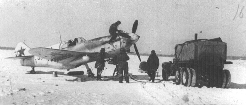 На "Уголке неба" прочитал, что в конце 1941 года ЛаГГи 11-серии поступили в 129 авиационный полк (06.12.41 г. полк был преобразован в 5-й гвардейский иап) на Калининском фронте. Достоверных фотографий именно самолетов этого полка я пока не нашел. Но приведу примеры (как образ) самолетов, на которые хочу равняться во внешнем оформлении. Кстати, многие из них на колесах. Ориентировочно, зима 1941-1942 гг.