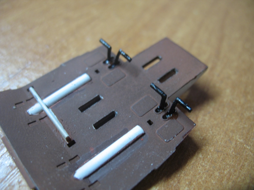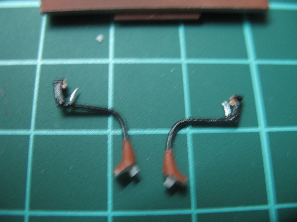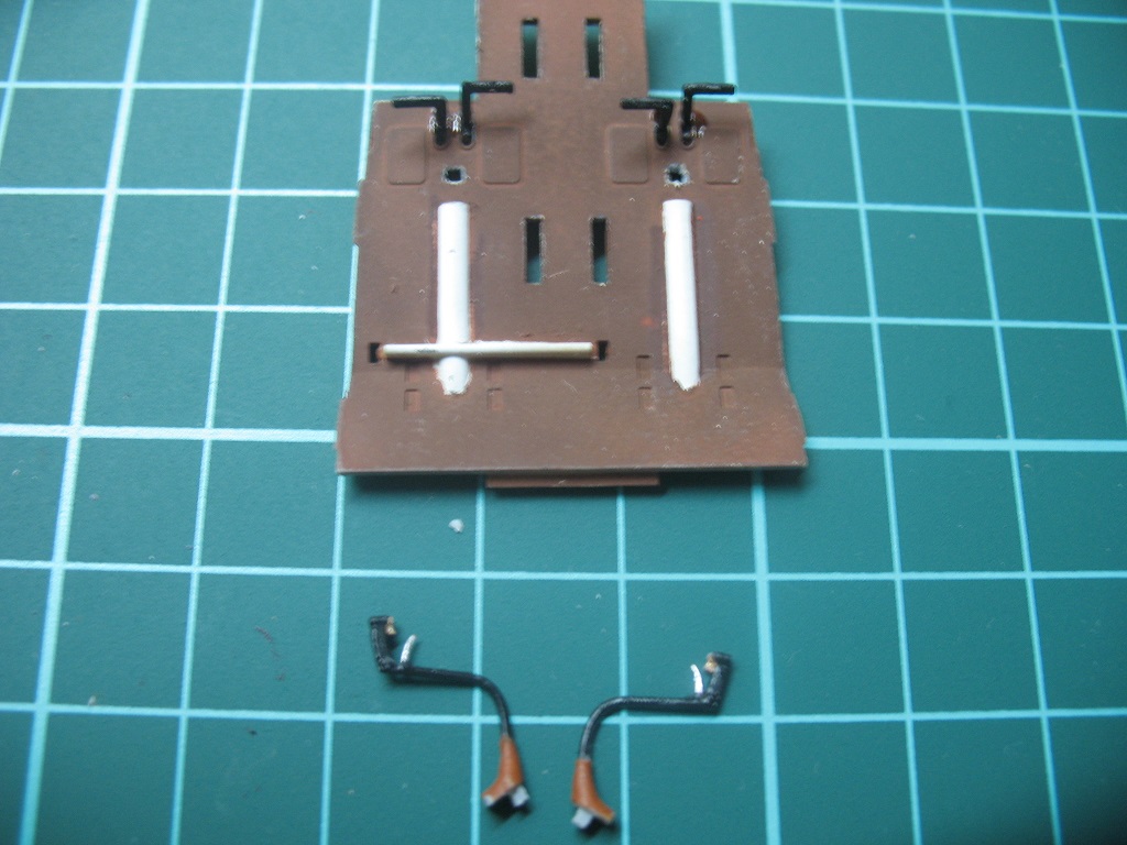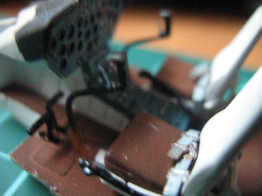 Окрасил ручки управления в черный цвет,тормозная гашетка-серебро,гашетка СПУ-РАДИО-коричнево-бронзовый.Позабавило крепление ручек к полу.Ответный прямоугольник на полу расположен длинной стороной поперек кабины,а выступы на ручках-вдоль. Если собирать как рекомендует фирма-ручки встанут поперек продольной оси вертолета.Пришлось точить и резать что бы поставить как нужно.