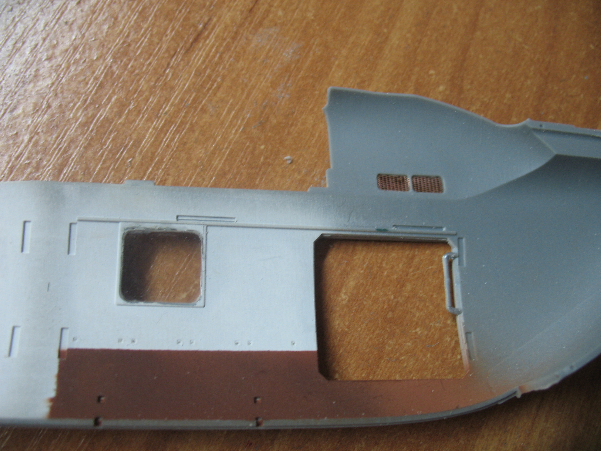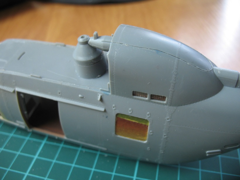 Вклеил окна в половинки фюзеляжа.Стекла в проемы не лезут-пришлось стачивать первые.Сеточки фототравления так же не входят в проемы-так же подгонял. Хоть и ЛНД на современном уровне, но все равно приходится все подгонять и подтачивать.