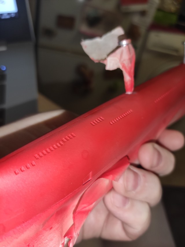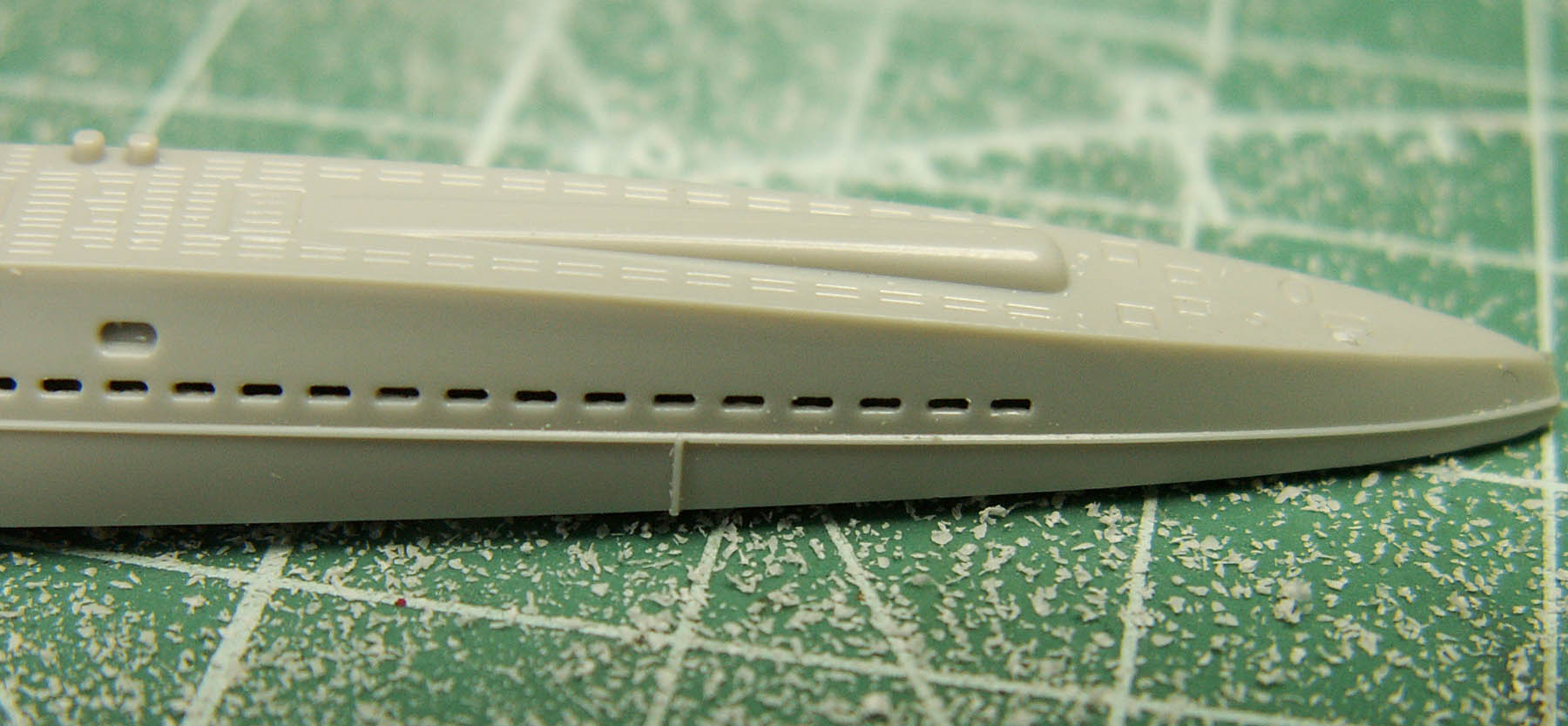 Приветствую. До склейки половин корпуса ВНУТРИ ЗАГОТОВКИ зубной фрезой в гравере (минидрели) выбирается пластик в местах шпигатов. Аккуратно, до очень тонкого. Тут главное найти оптимальную толщину. Затем делается инструмен по форме профиля шпигата (можно подточить гвоздь, мед иглу, стальную проволочку. - что лучше подойдет). И аккуратно продавить этим инструментом тонкий пластик в шпигатах, после подровнять, где нужно, хоть кончиком острого модельного ножа.