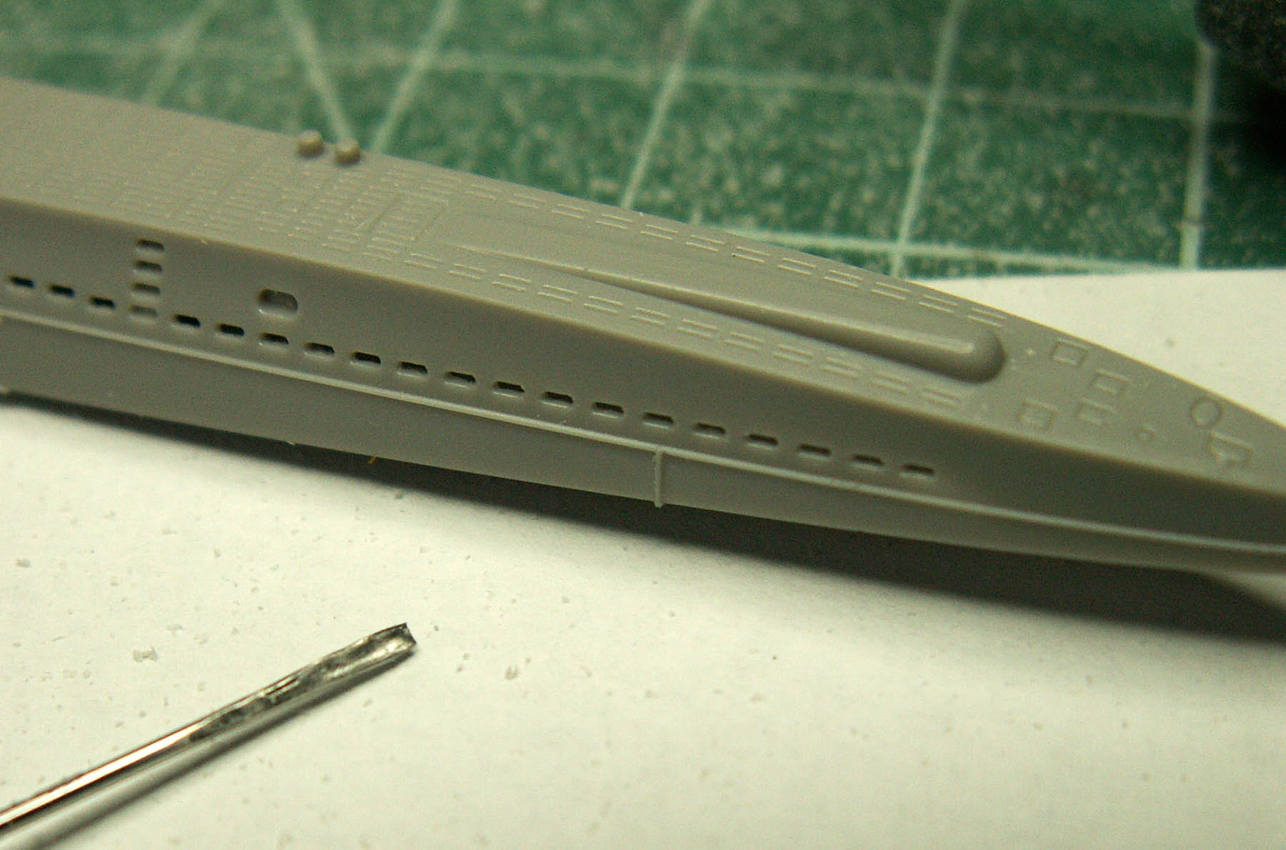 @Антон Хотеев написал:Приветствую. До склейки половин корпуса ВНУТРИ ЗАГОТОВКИ зубной фрезой в гравере (минидрели) выбирается пластик в местах шпигатов. Аккуратно, до очень тонкого. Тут главное найти оптимальную толщину. Затем делается инструмен по форме профиля шпигата (можно подточить гвоздь, мед иглу, стальную проволочку. - что лучше подойдет). И аккуратно продавить этим инструментом тонкий пластик в шпигатах, после подровнять, где нужно, хоть кончиком острого модельного ножа.