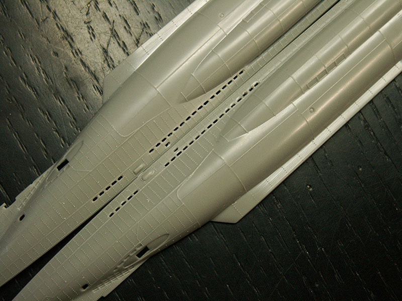 Вот здесь стык корпуса шпаклевал тамиевской шпаклевкой, потом шлифовал с водой до 1500 зерна, и все равно стык остался видным.