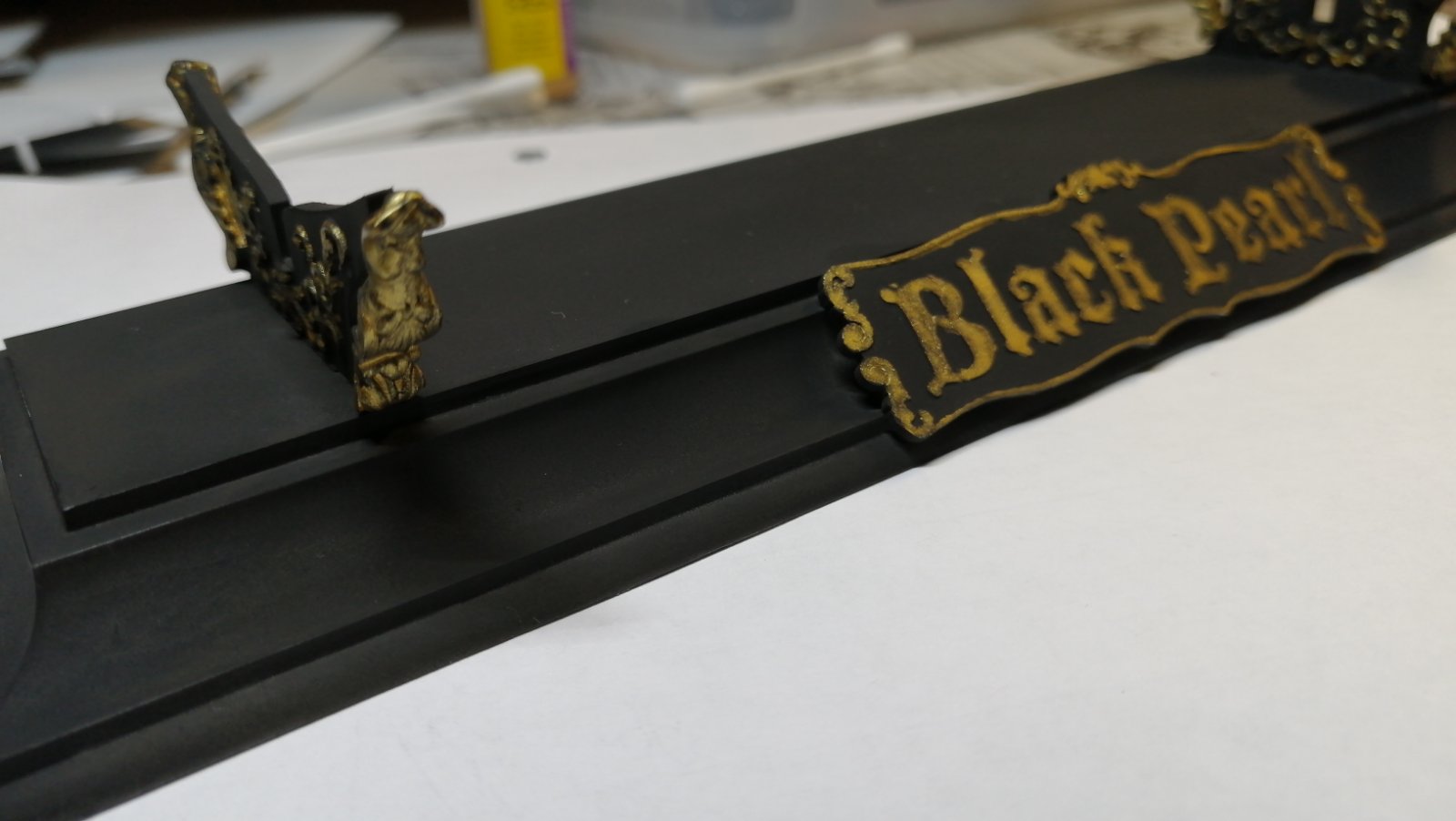 Попробовал две техники предложенные Александром и Дмитрием. Масляная краска по светлой основе мне очень понравилась, но на мой взгляд на черную жемчужину она не подходит. В итоге покрасил аэрографом коричневым акрилом тамии, а затем сухой кистью прошелся темно-коричневым акрилом опять же от тамии. Мне результат понравился и я решил так его и оставить: