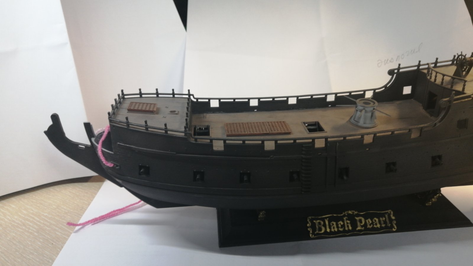 Во-первых, согласно фильма (последней части) на ЧЖ якорь крепится с помощью цепей, а большинство моделей (и в наборе) дается канат: