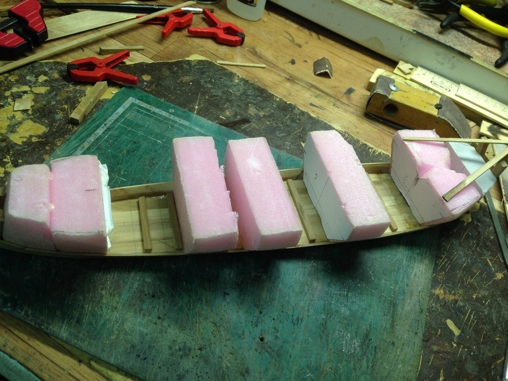 . Ну а у меня двигатеся по маленьку.... шпангоуты все поставил, далее обрезать их по высоте и ставить дальше борта основного корпуса................