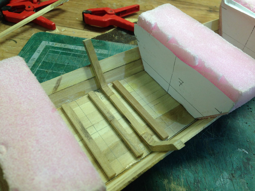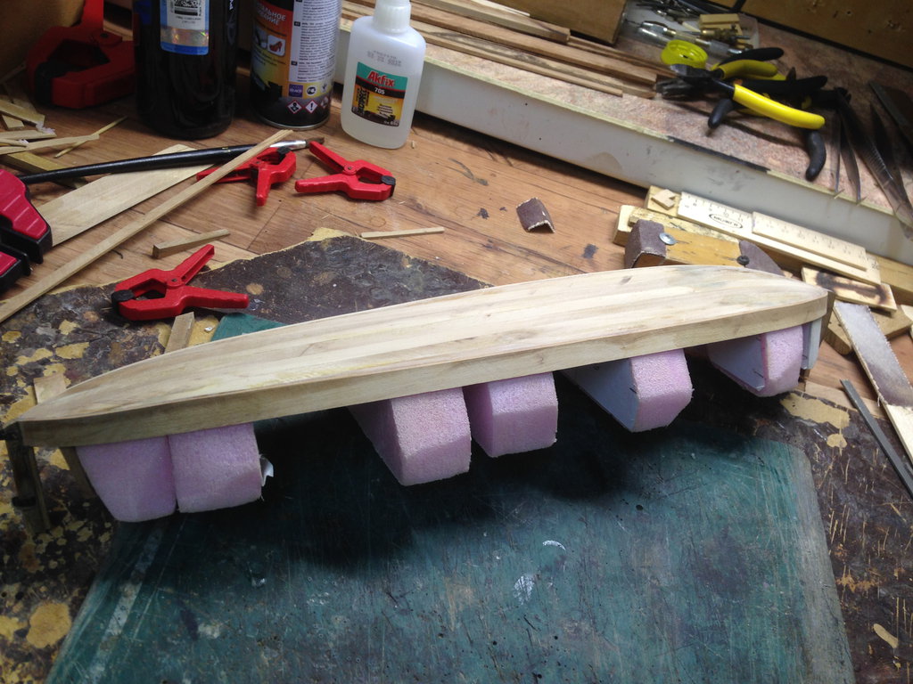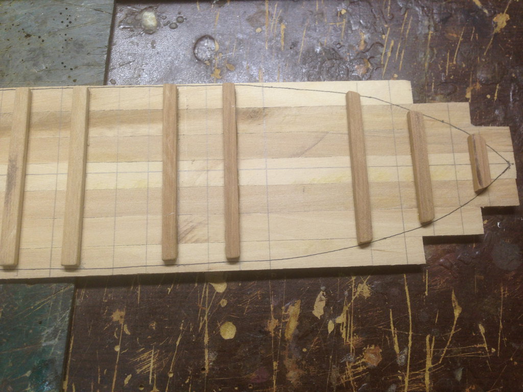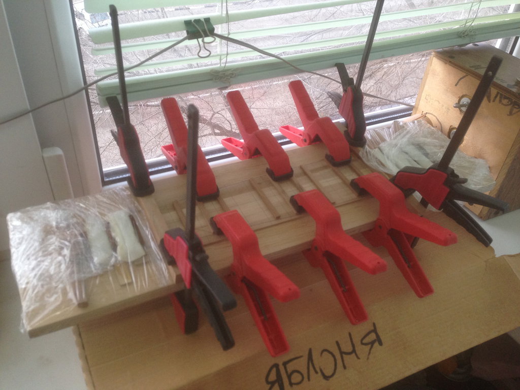 Работа пошла...................склеил днище и приклеил большинство брусов поперечного крепления............. Фотки как всегда будут в разнобой, но по номерам можно понять очередность.....
