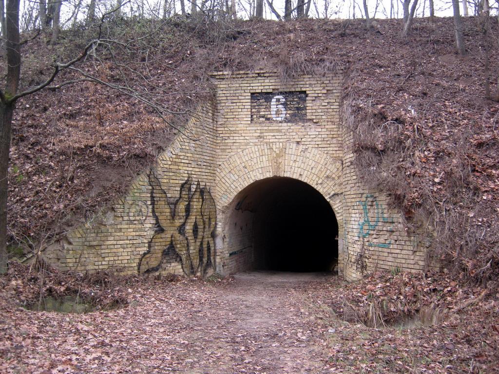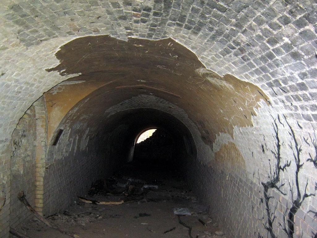 Самое интересное здесь – это кирпичные потерны, сделанные в насыпях с целью быстрой переброски войск. Всего их восемь. Также потерны могли использоваться в роли убежищ при артобстреле. Впоследствии в них же хранились боеприпасы.