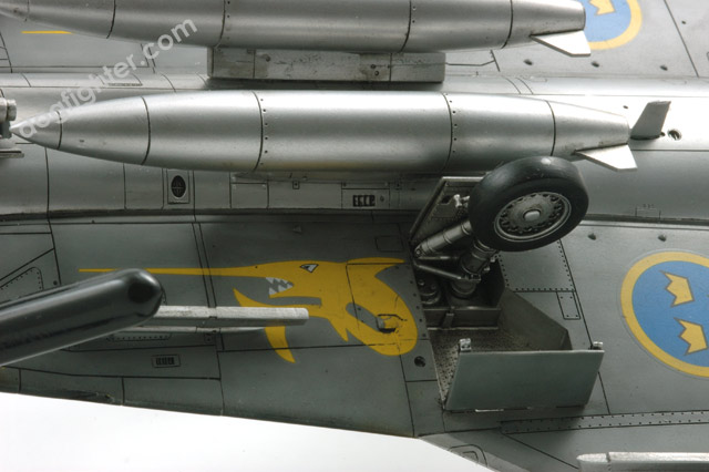 Всплыла еще одна проблема: посадочные места для основных стоек шасси гораздо шире самих стоек. Я их пока зашпаклевал и оставил дырки, соизмеримых размеров. Если не найду шасси из доп. наборов, прийдется ставить родные, надеюсь, не очень будет видно.
