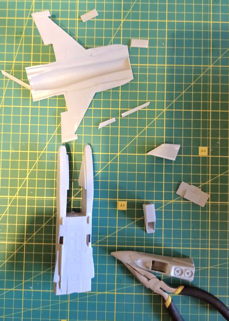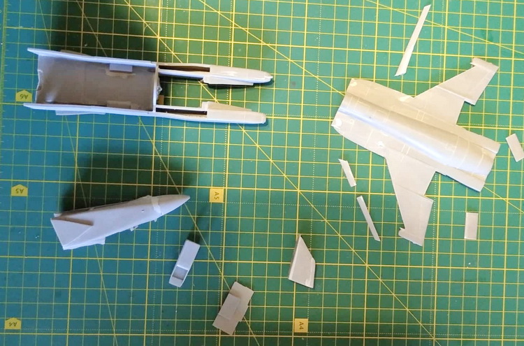 Приветствую всех! Еще до окончания работ на "Дракеном" запустил в работу Як-141. Потихоньку собрал центроплан, как водится на моделях от родной АРТ- модел, расшивку придется восстанавливать.