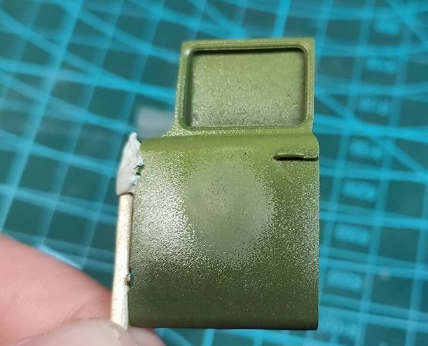 Кабина загрунтована, можно красить. Грунтовка Tamiya серая, из баллончика