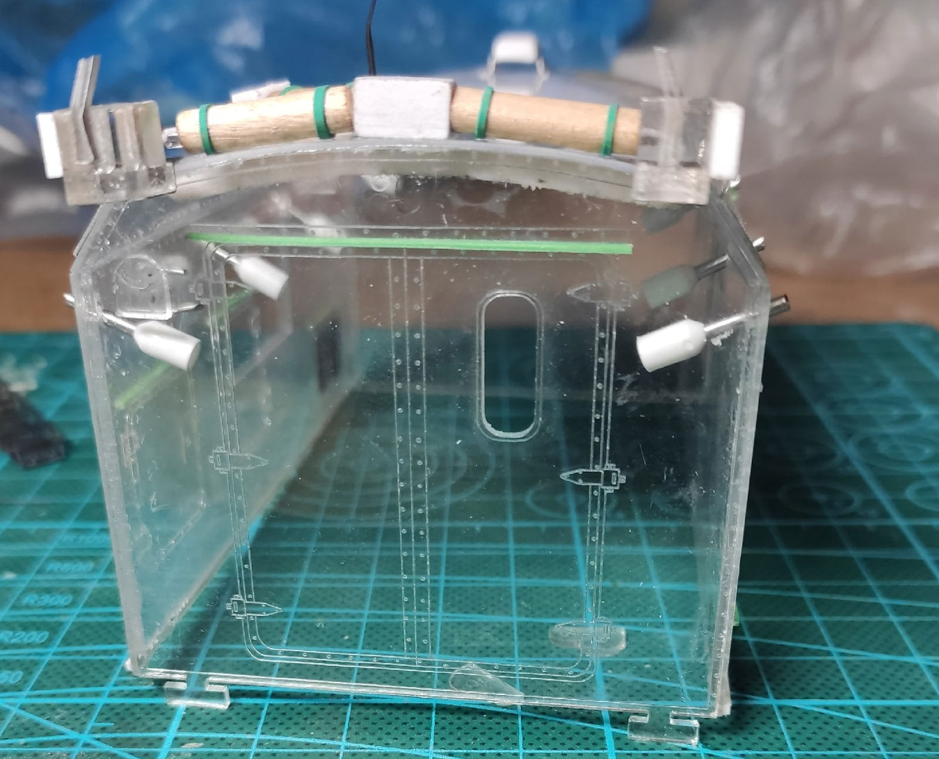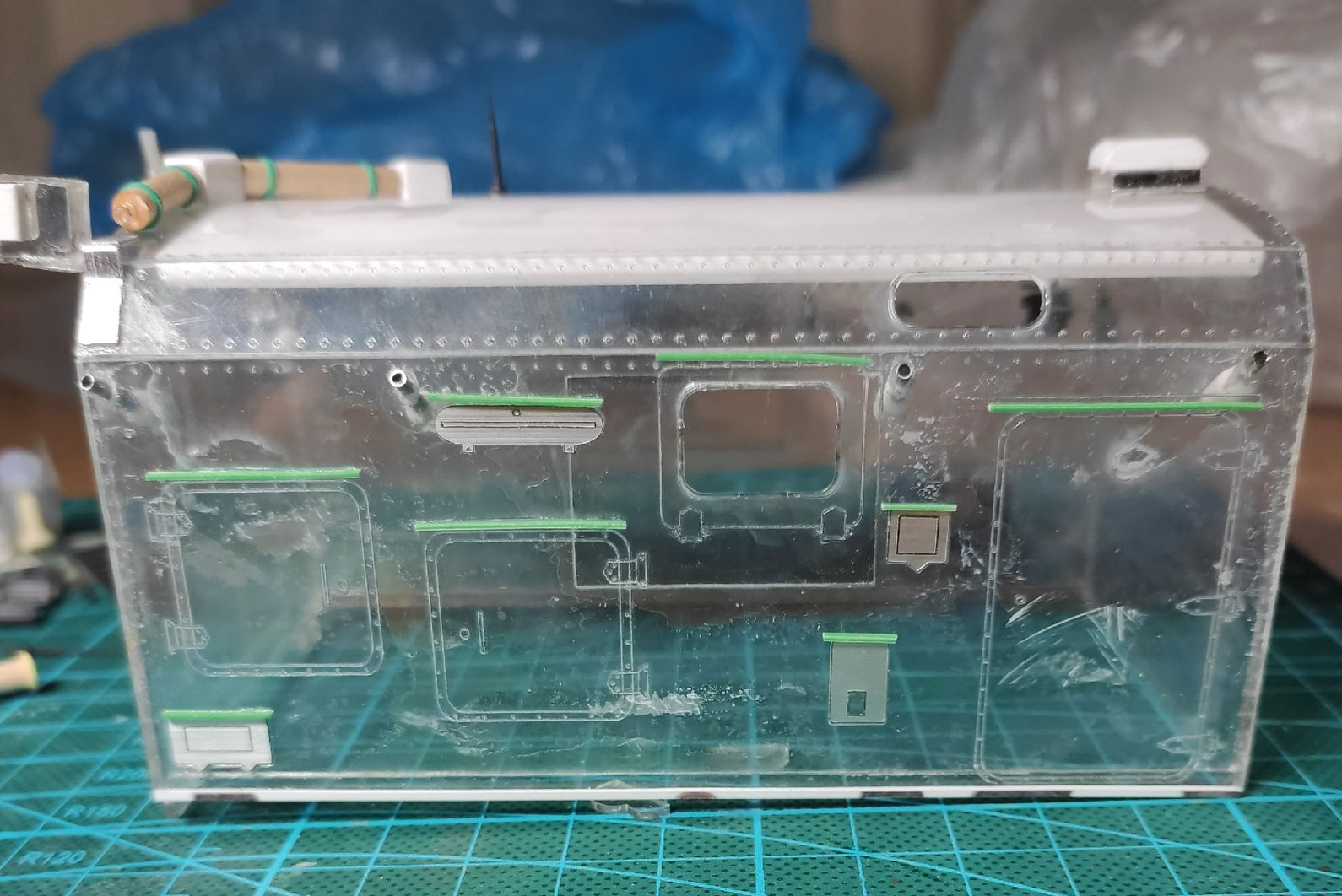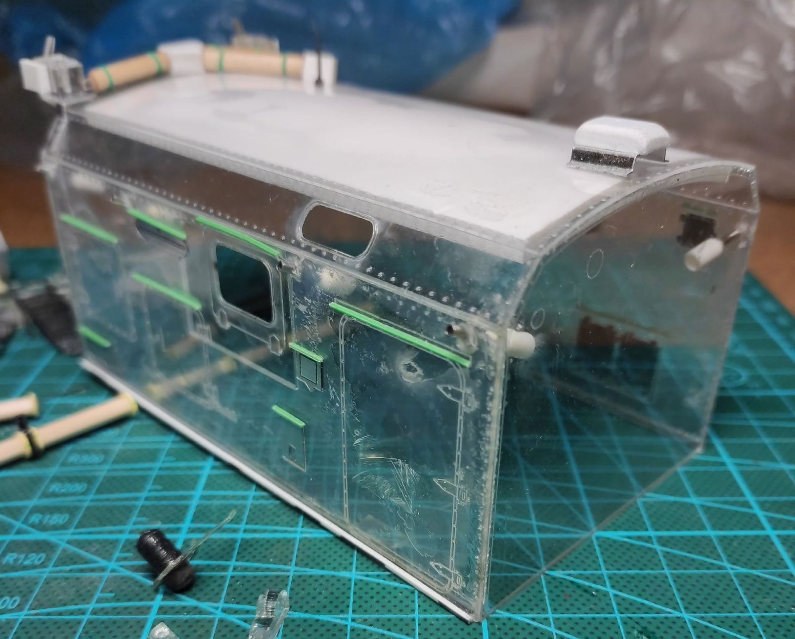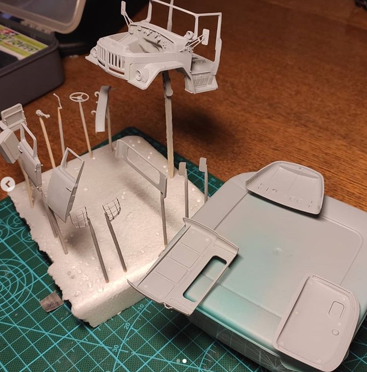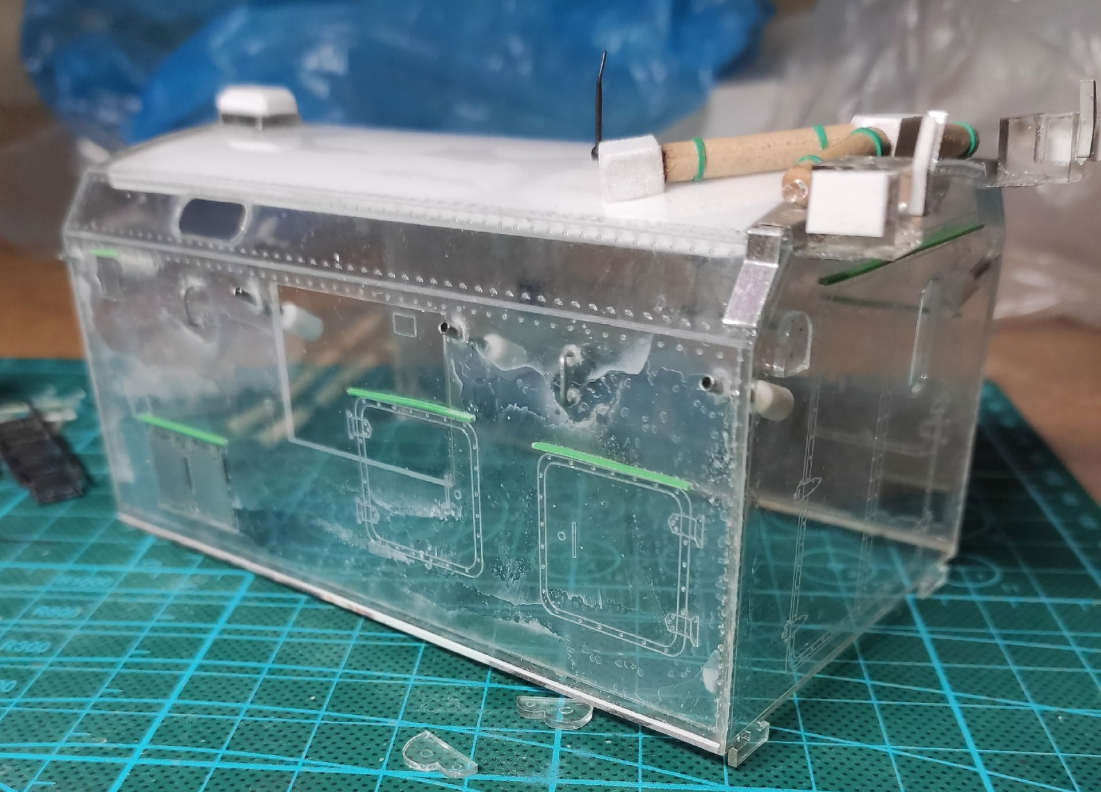 Приступил к кунгу. Приклеиваю мелочи, дорабатываю по чуть-чуть, делаю поручни из проволоки.