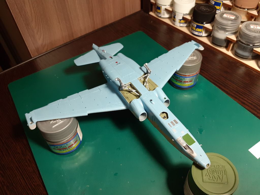 Пересмотрел фото, пардон, видимо пропустил   Вот на 82 фото - да, видно что стойки отличаются цветом от "низа". В принципе, да, в масштабе некритично, вопрос снимается   Зато на этом фото отлично видно, что вход воздухозаборников отличается от цвета нижних поверхностей, похоже цвета стоек и внутренних поверхностей створок (фото 48), что неверно, т.к. на заводской окраске с-тов 10-й серии створки цвета ниш, т. е. грунта)
