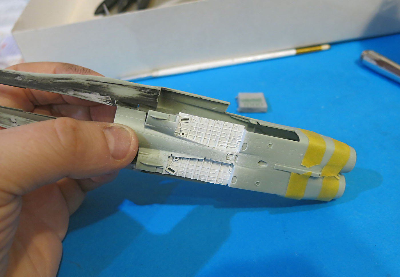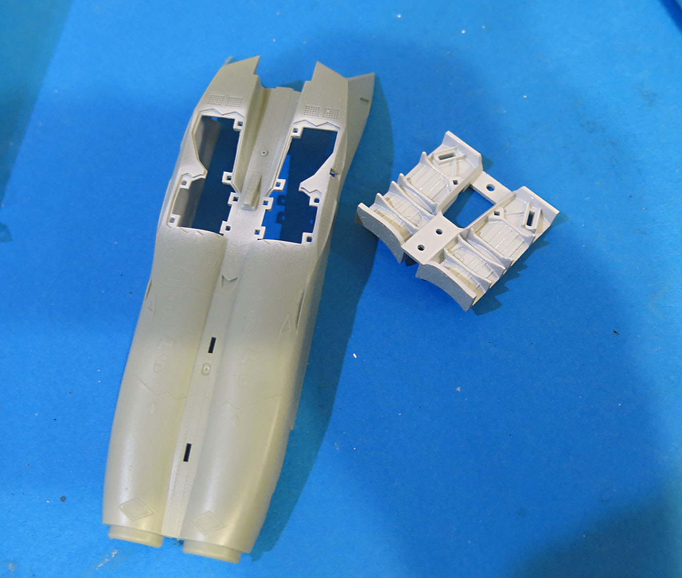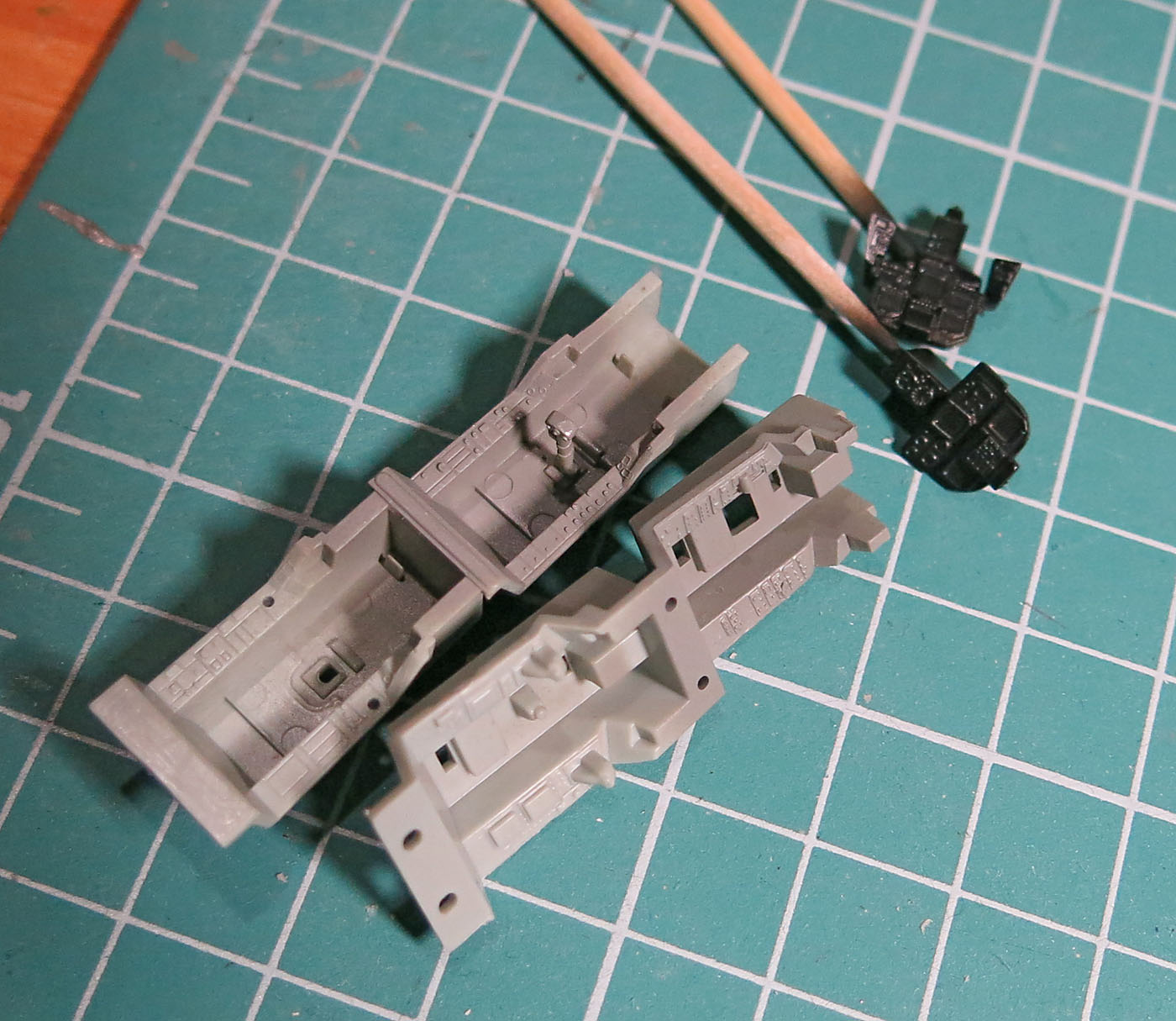 Удачной постройки! я сейчас заканчиваю новую спарку и все выше сказанное верно замечено! я из набора взял только баки и доработал кабину! а вот старая спарка! на сколько я знаю самая лудшая на рынке! да и вооружение в полне приличная! Советую на кресла добавить пару ремней хотя бы из скотча! о то после сборки жалеть будешь!