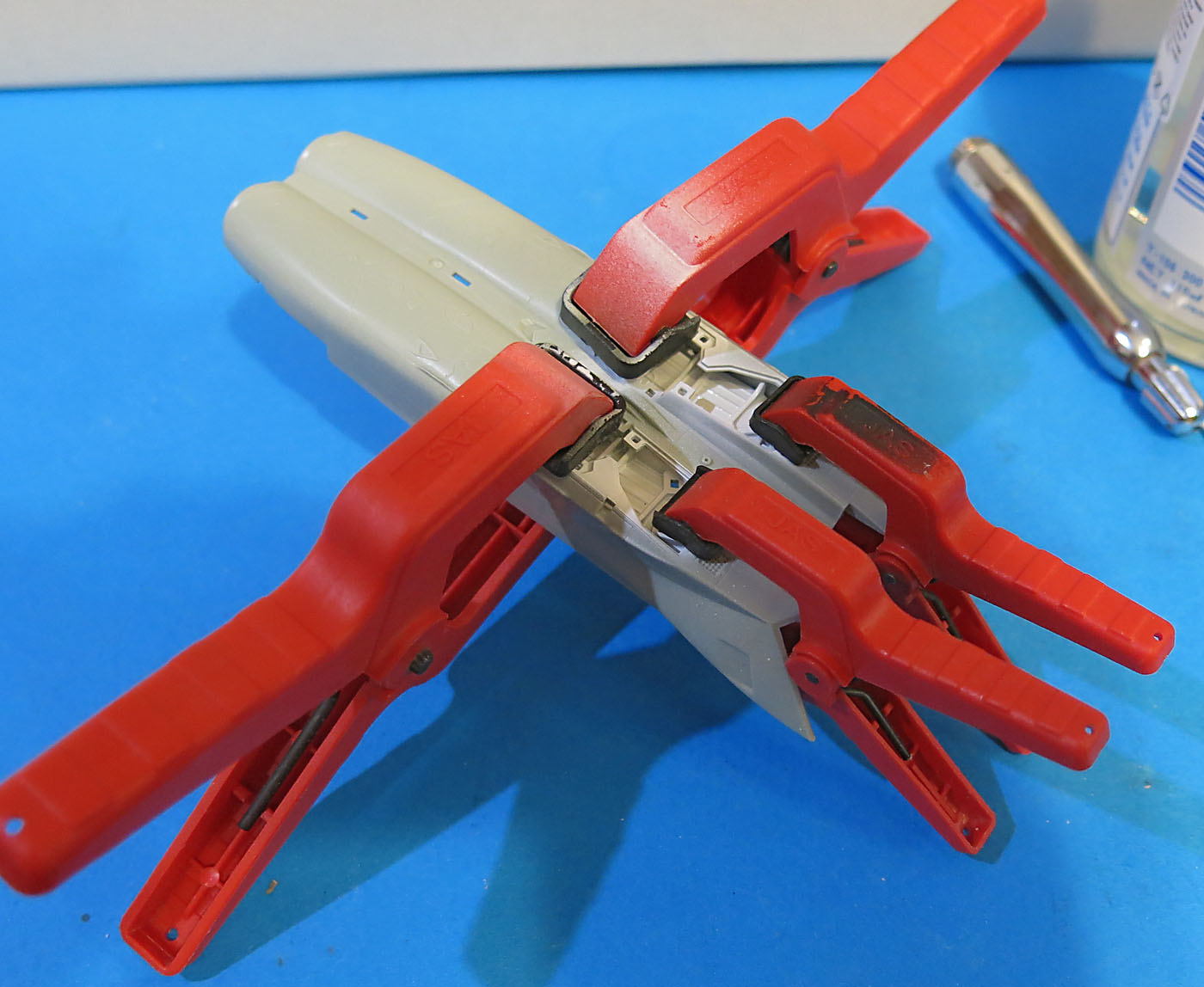 Такой струбцинки у меня увы по размеру не было - колхозил сжатие как умел