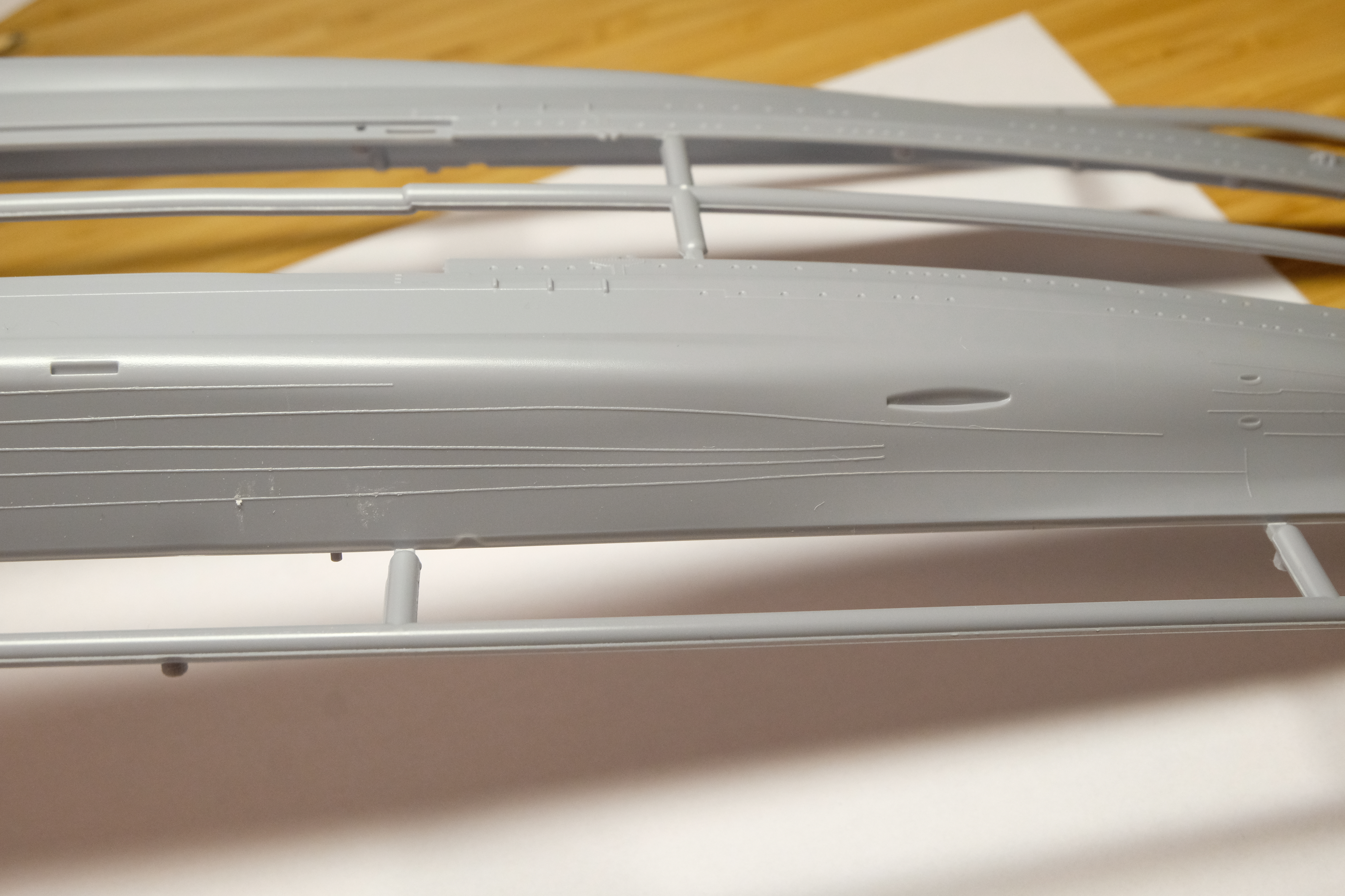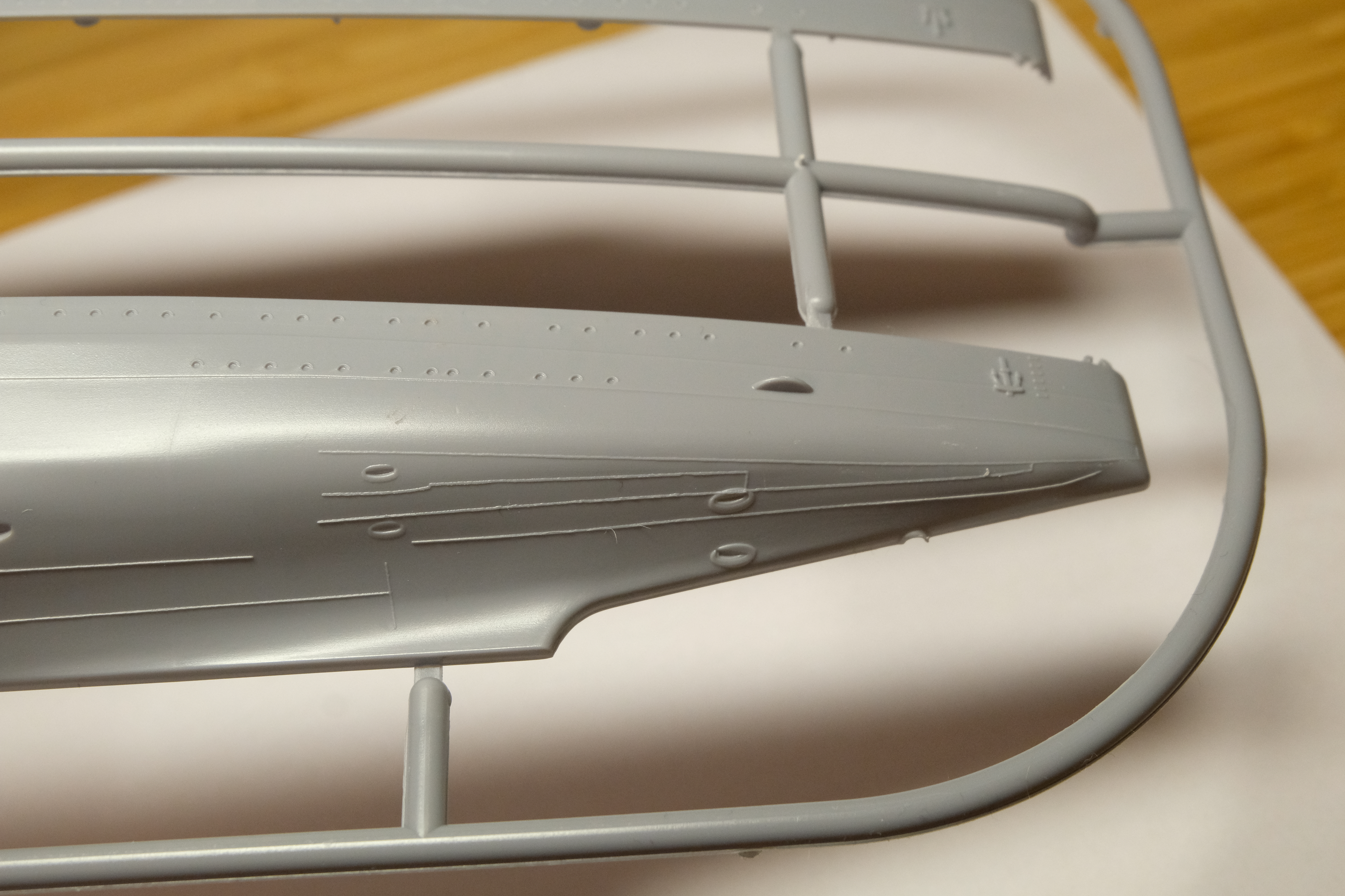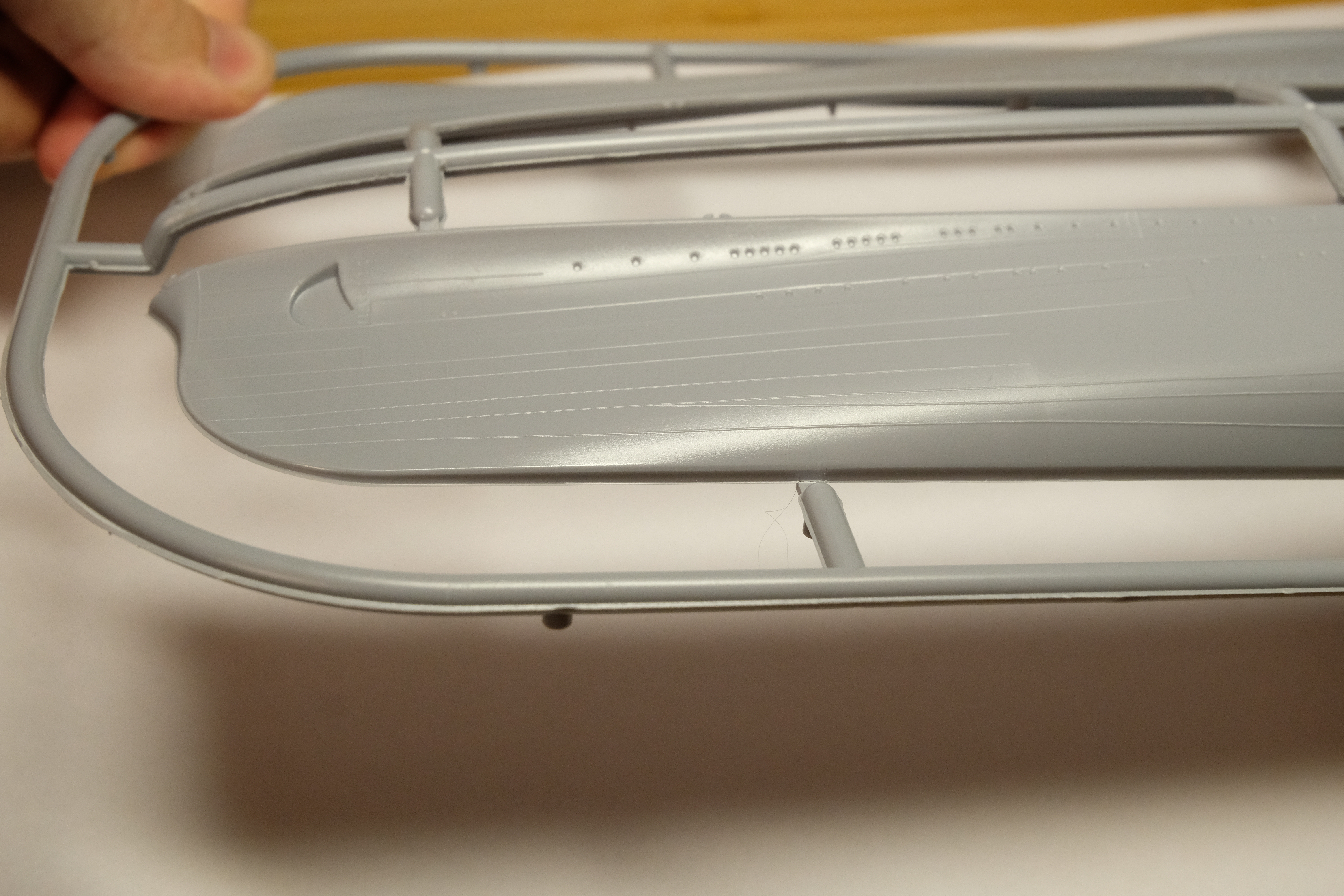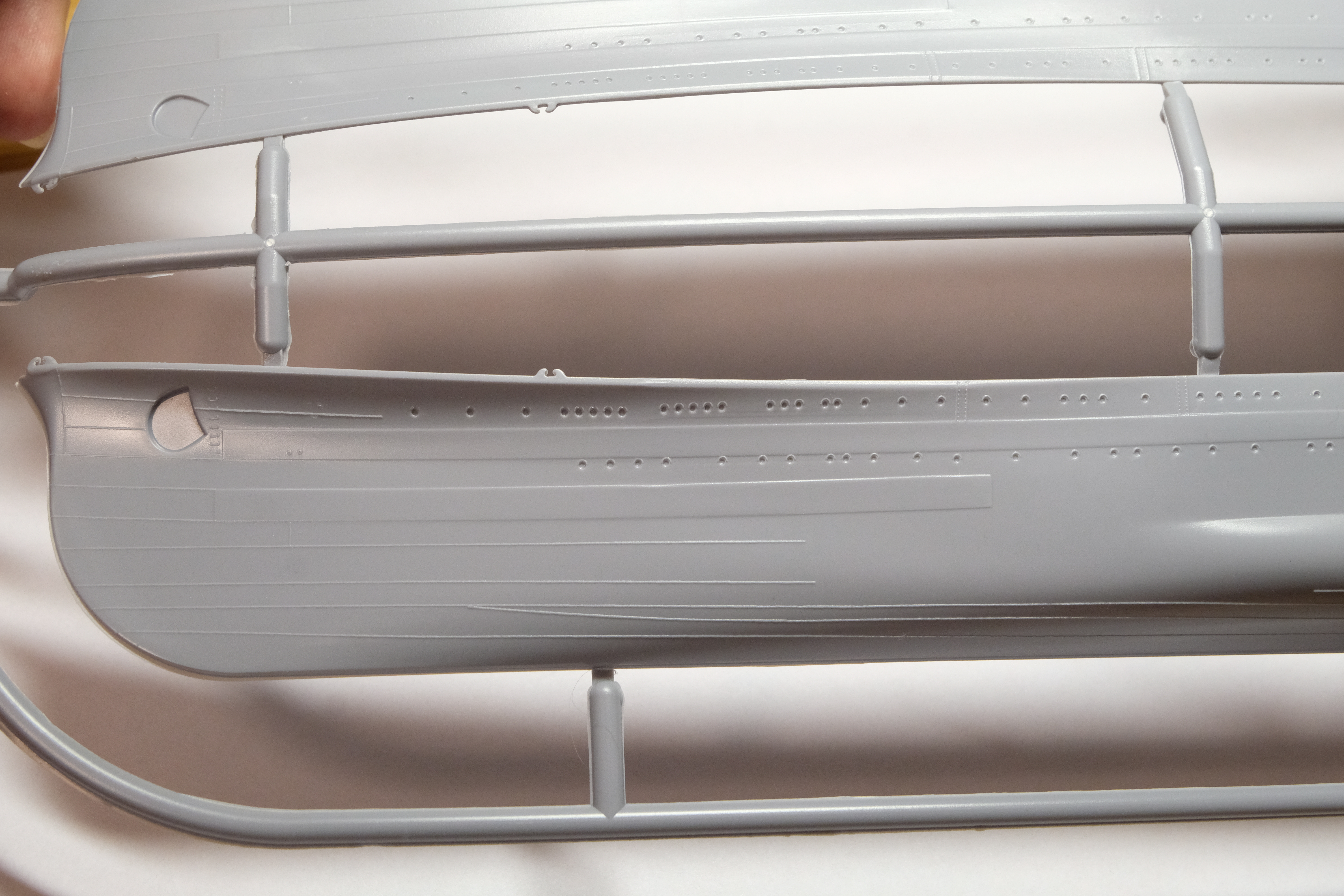 Поэтому после склейки половинок корпуса, нос будет затачиваться на участке до иллюминаторов