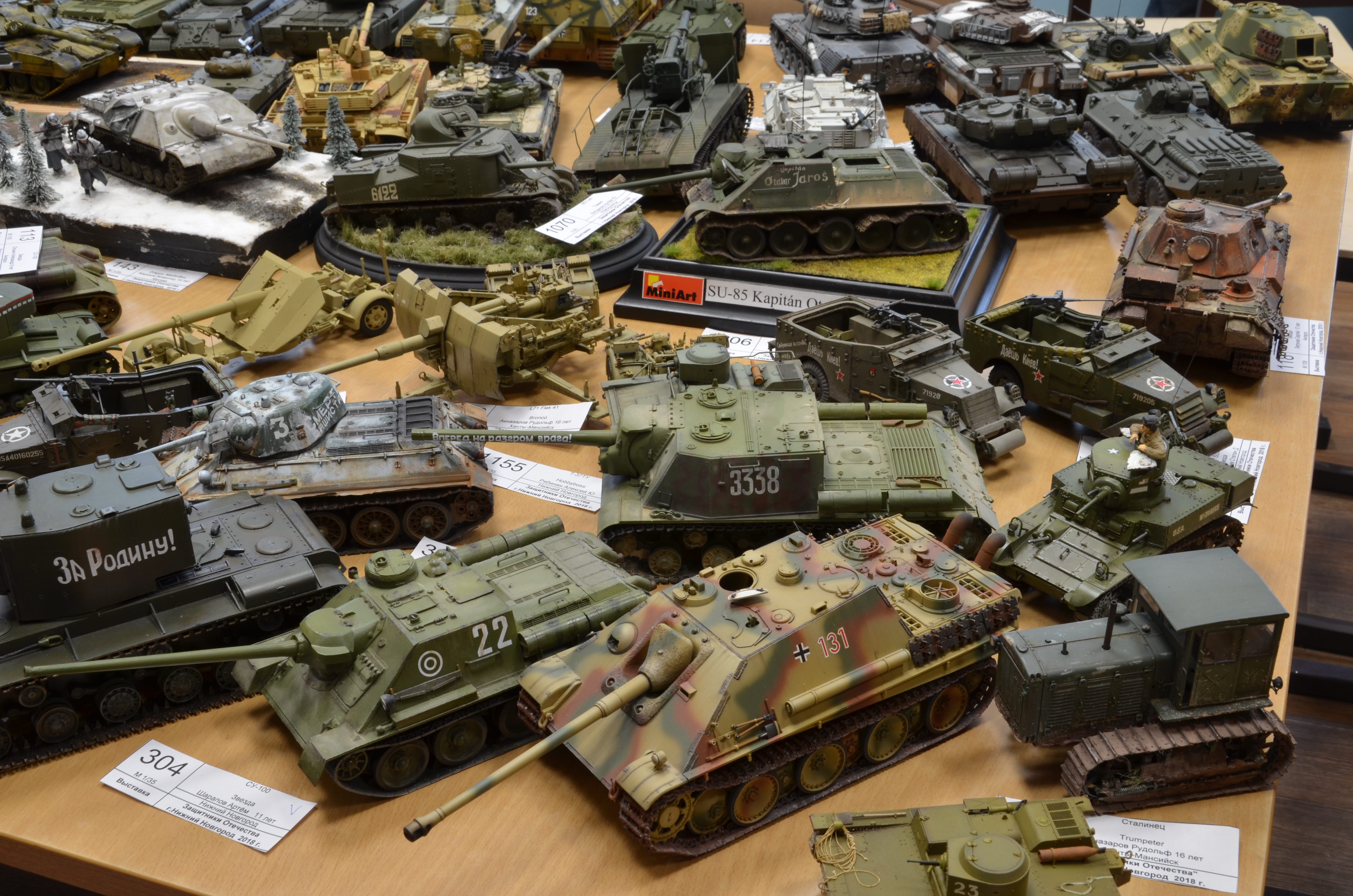 Хочу напомнить что спецноминация по танку Т-34 предполагает разделение на три группы: Т-34/76(57), Т-34/85 и машины на базе Т-34. Каждая соответственно будет разделена по масштабам. Надеемся увидеть у нас всё разнообразие модификаций легендарного танка. Специально для гостей нашего города - этот Т-34 не привезёт вас на выставку(если только с пересадкой).