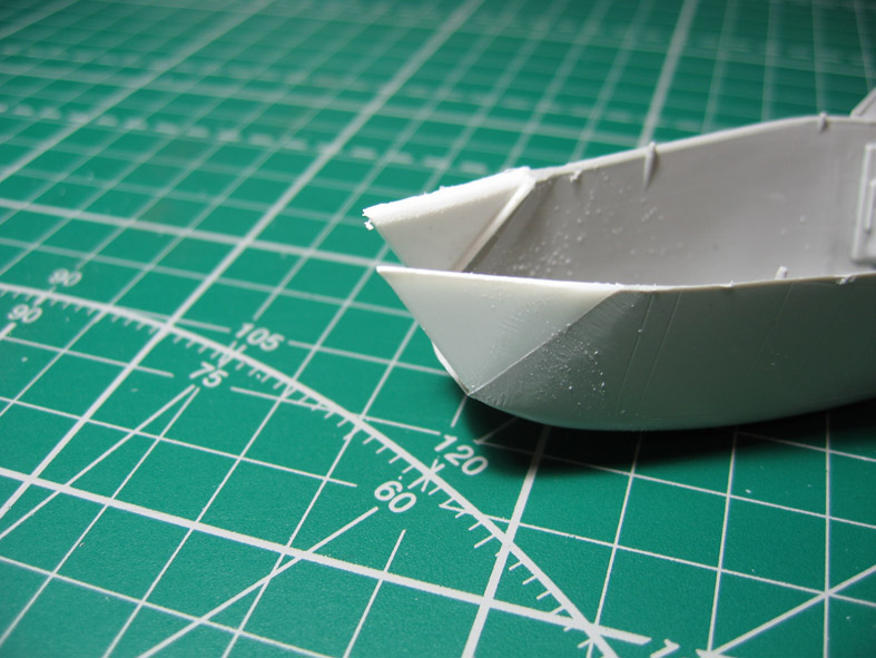 Поработал над хвостом. Из пластика вырезал заготовки. Прорезал расшивку, сымитировав рули направления