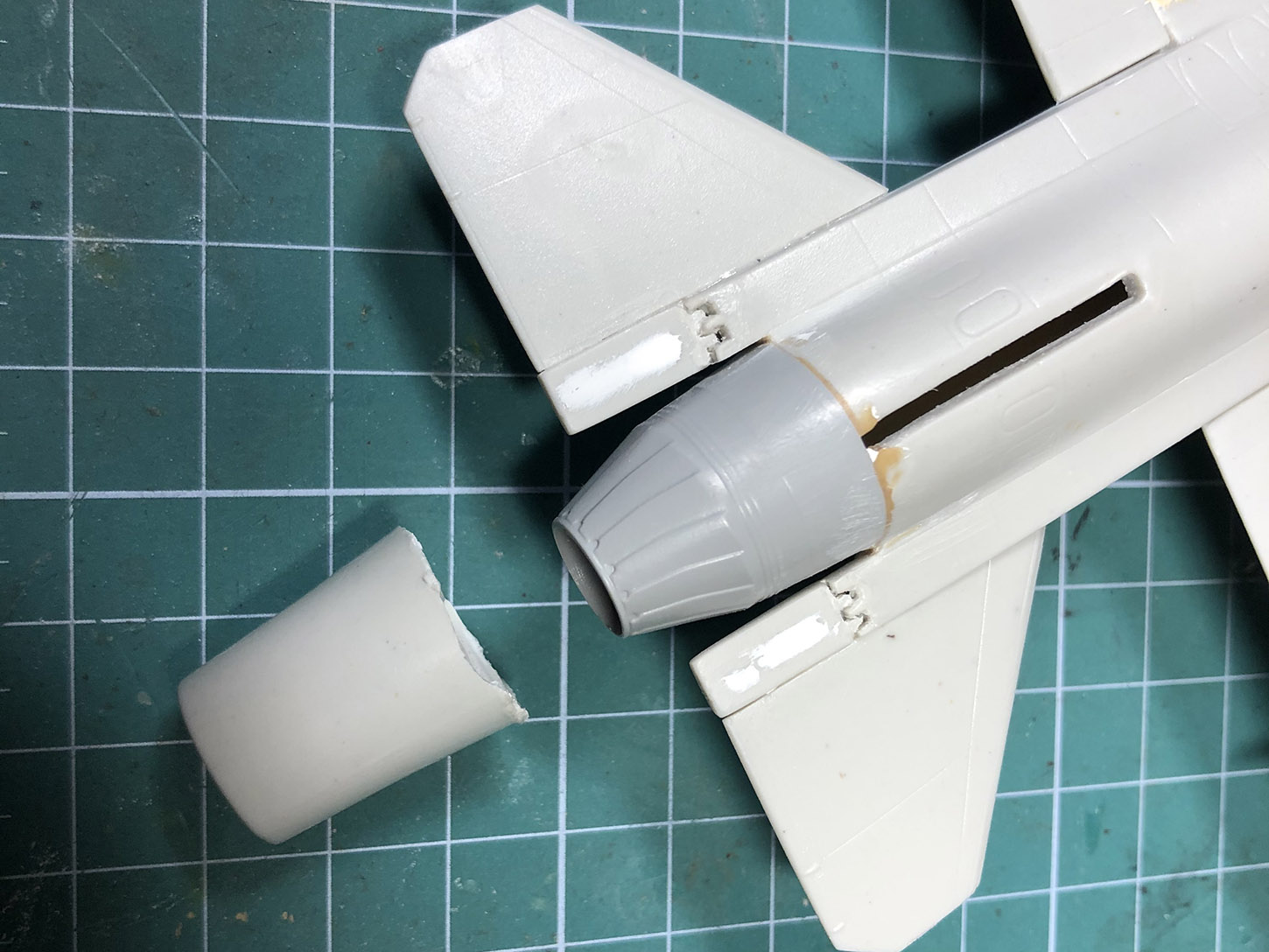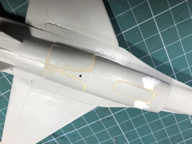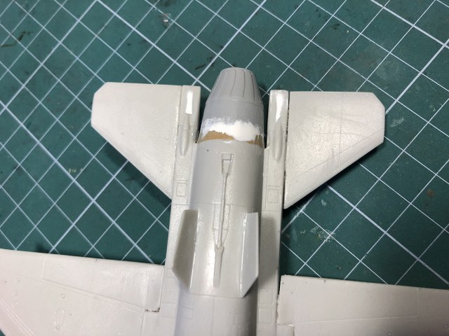 Шпаклевки пошло много. Из-за того, что качество модели не очень, решили закрыть шасси - поставим его на подставку. Качество модели такое ужасное, что похоже производители не рассчитывали на то, что щитки шасси могут закрываться