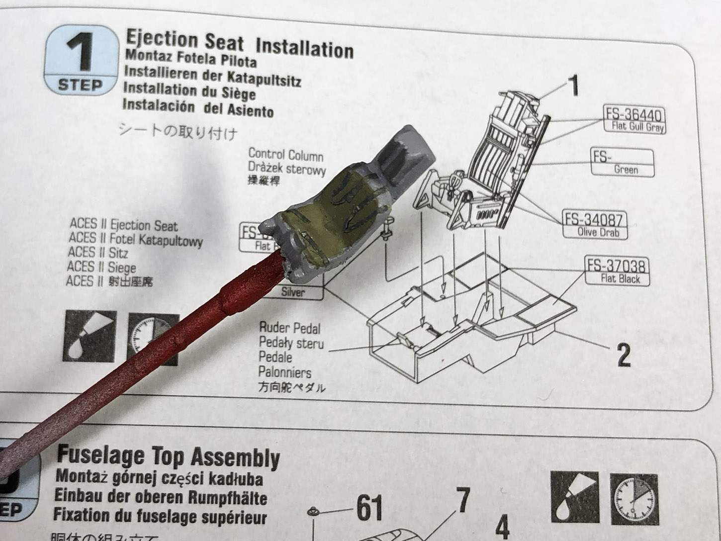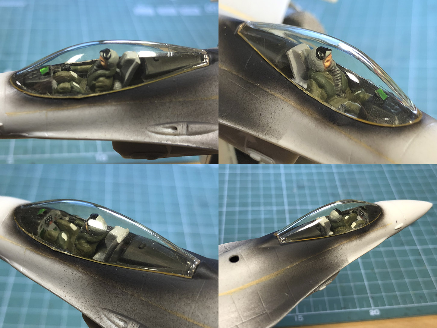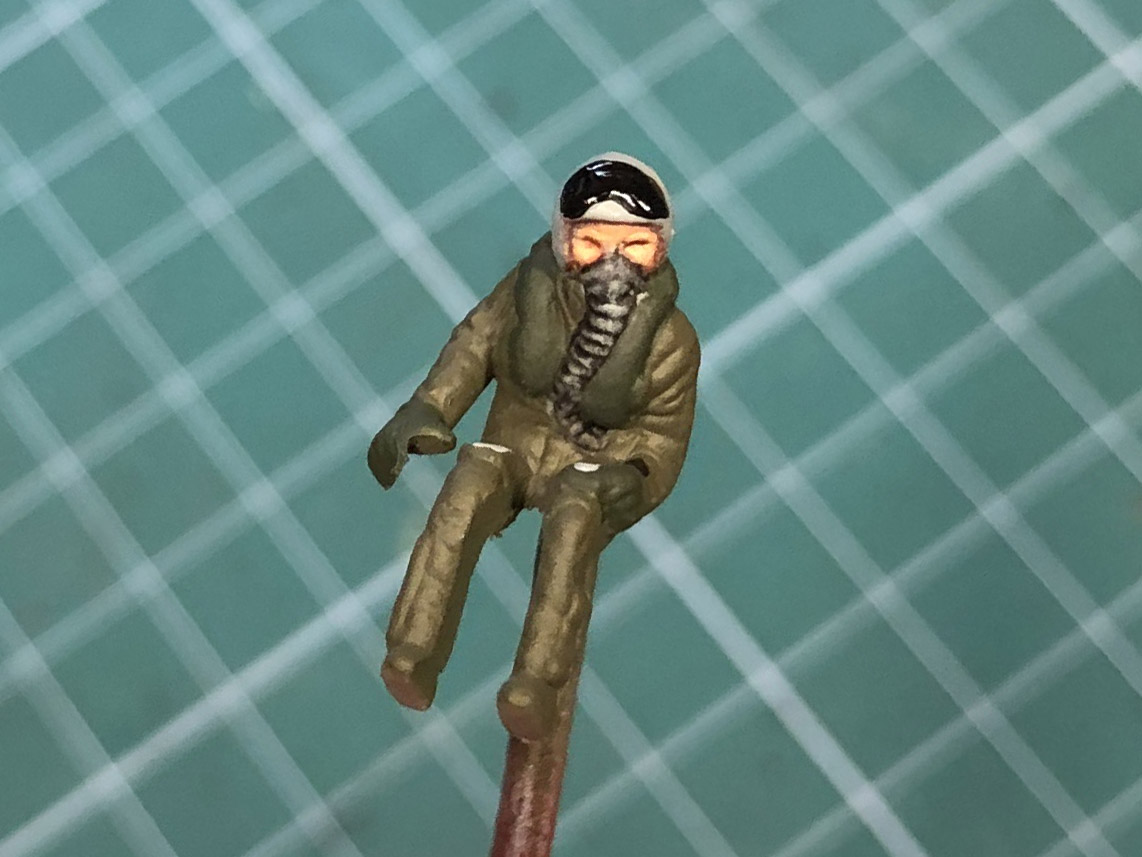 В завершении, у папы нашелся летчик, которого мы покрасили и он будет сидеть в кабине. А фонарь кабины покрыли футурой с йодом, так как у оригинала он такой затонированный.