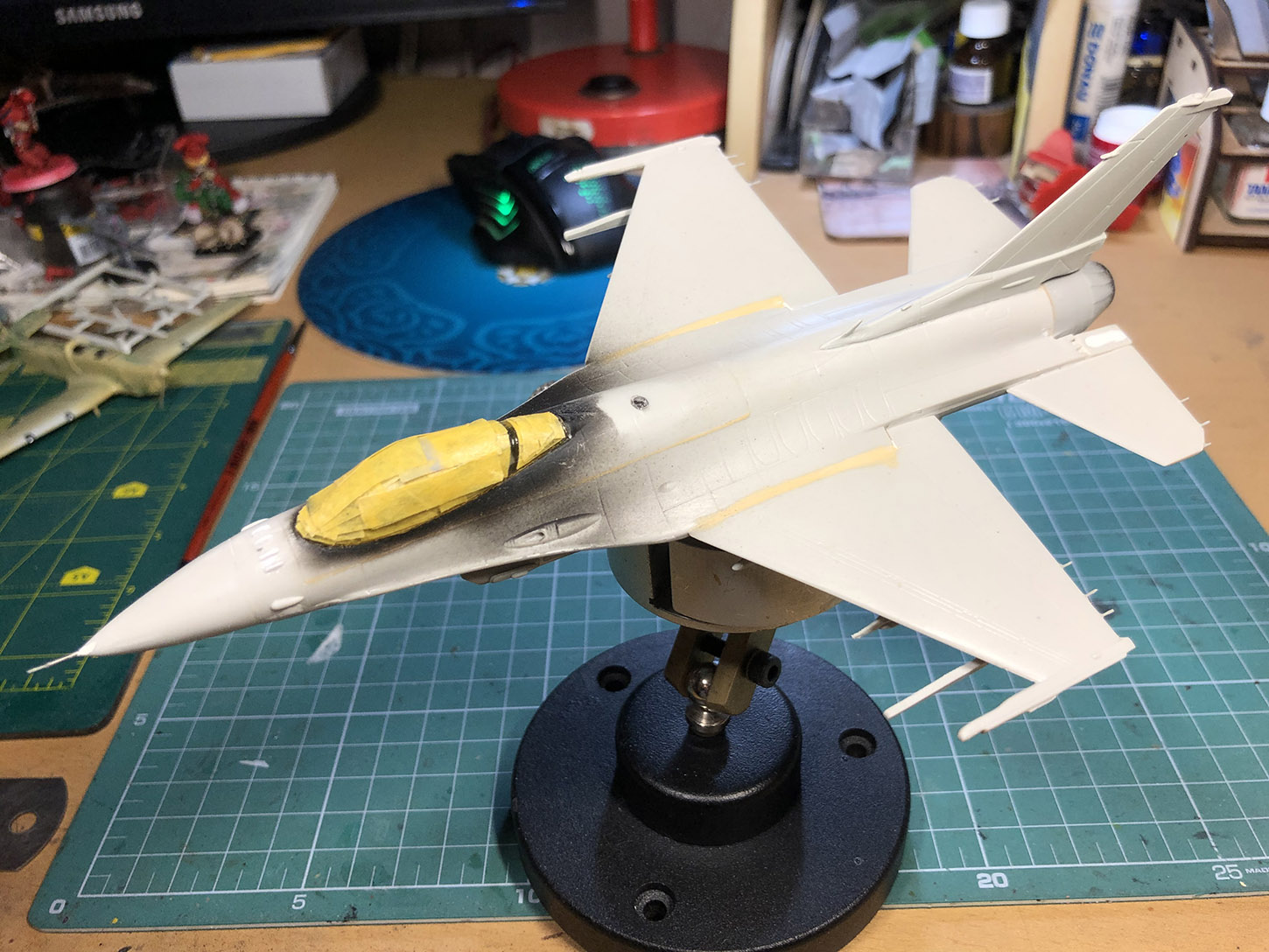 Хотел бы присоединиться к конкурсу со своим F-16. Изначально у нас с отцом был план вместе собрать параллельно два F-16 (у него Italeri). Но пока он участвовал в конкурсе ново я начал собирать свой сам.