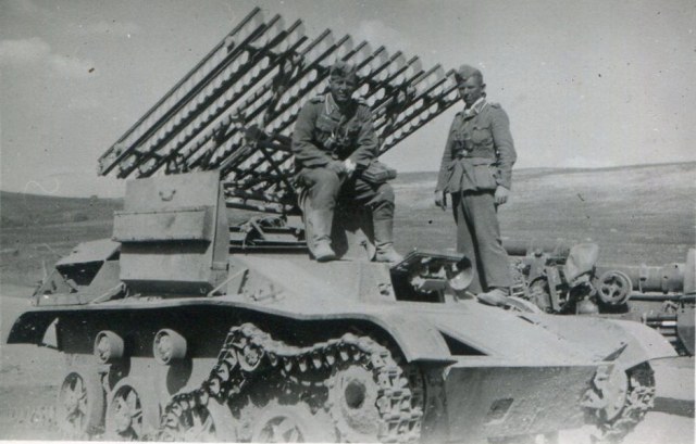 в работе диорама: немецкий самоход с экипажем на улице города