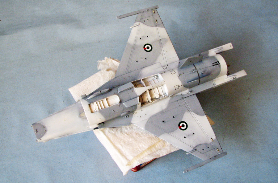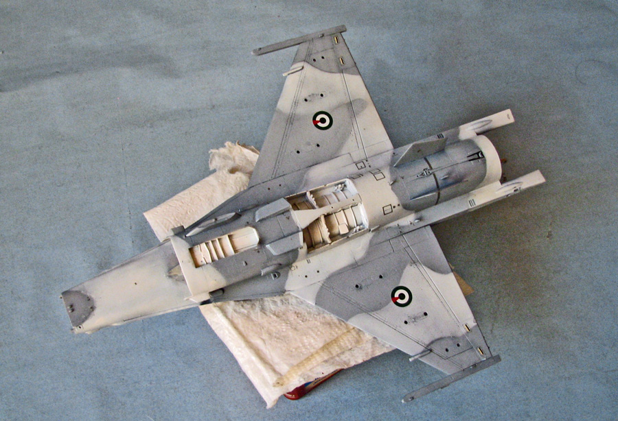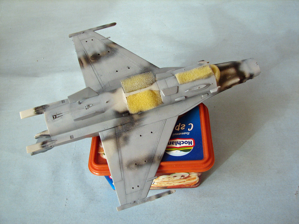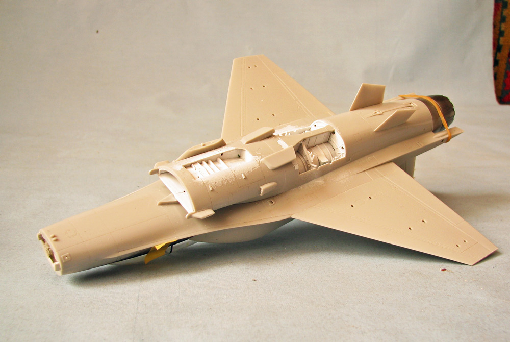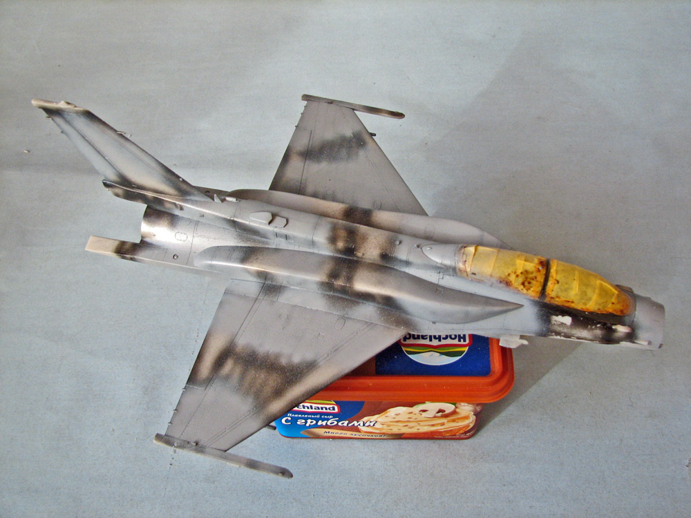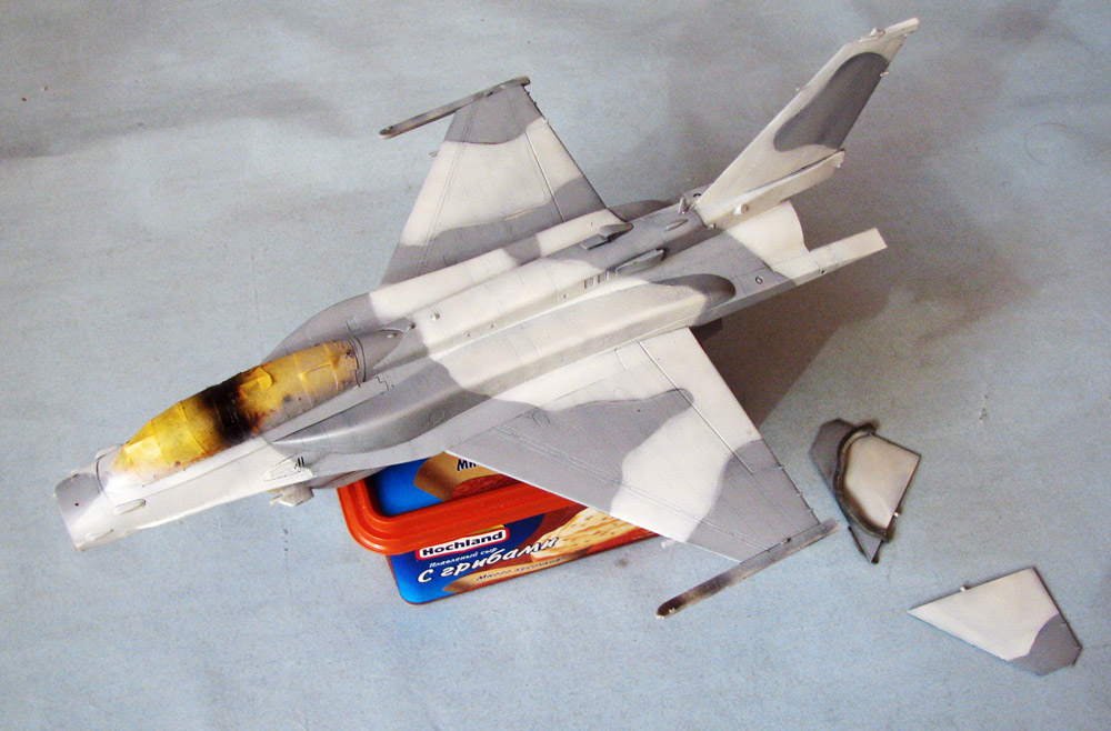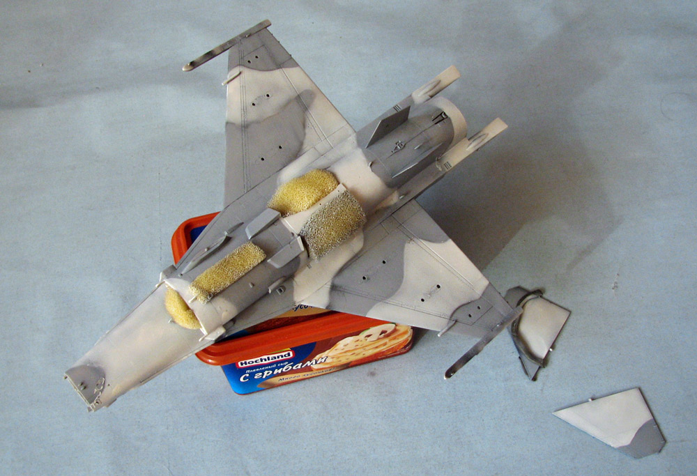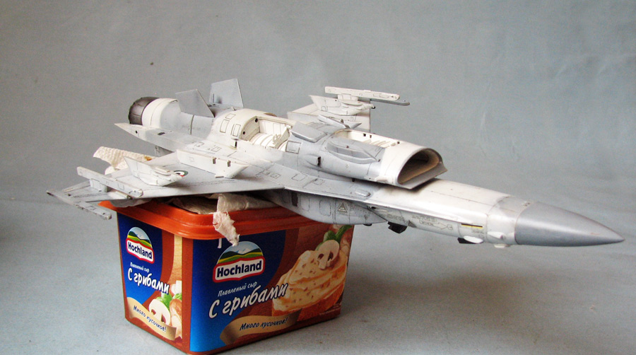 Собрал планер - приклеил гаргрот с килем, конформные топливные баки, крылья, вз и разные мелкие и не очень вз и сопла снизу и сверху...