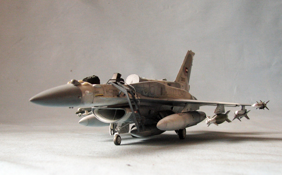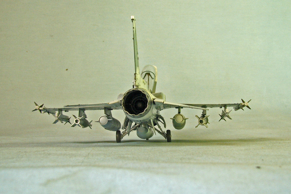 Хася амеровский Ф-16 сделала менее подробно,чем японский Ф-16 (Ф-2а) - в нише отсутствовали некоторые детали, пришлось сделать по аналогии с Ф-2, также не было на коке датчиков, типа шипов. Поставил модель на "ноги"